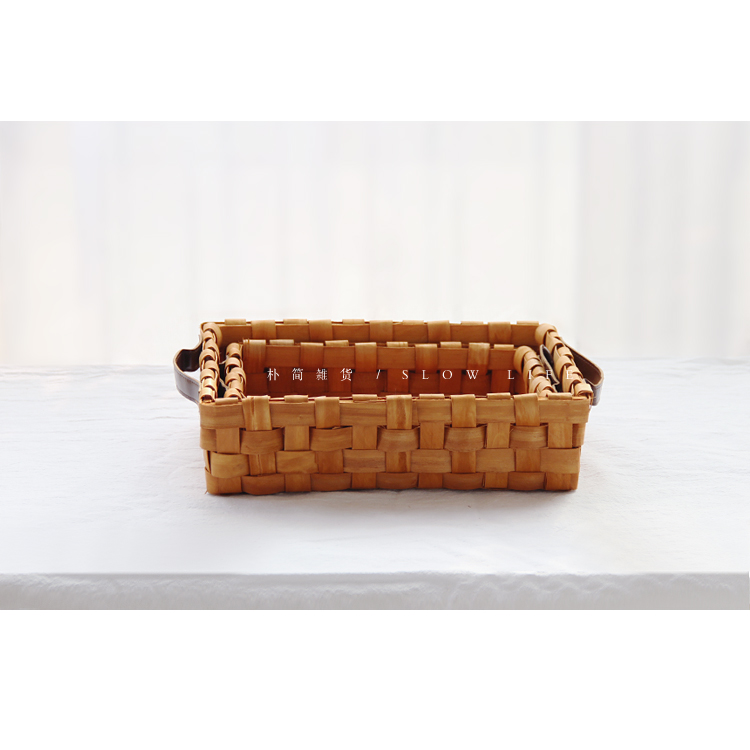 樸簡 日式田園風原木木片收納籃 手提面包籃 餐具桌面水果收納籃