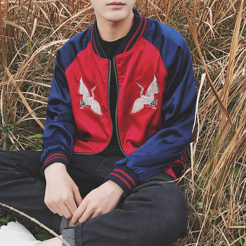 / 男裝最牛逼的刺繡兩面穿棒球領男士情侶夾克外套