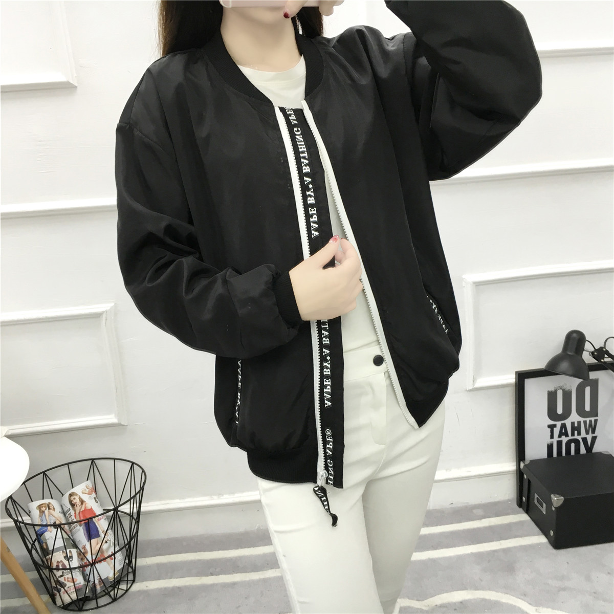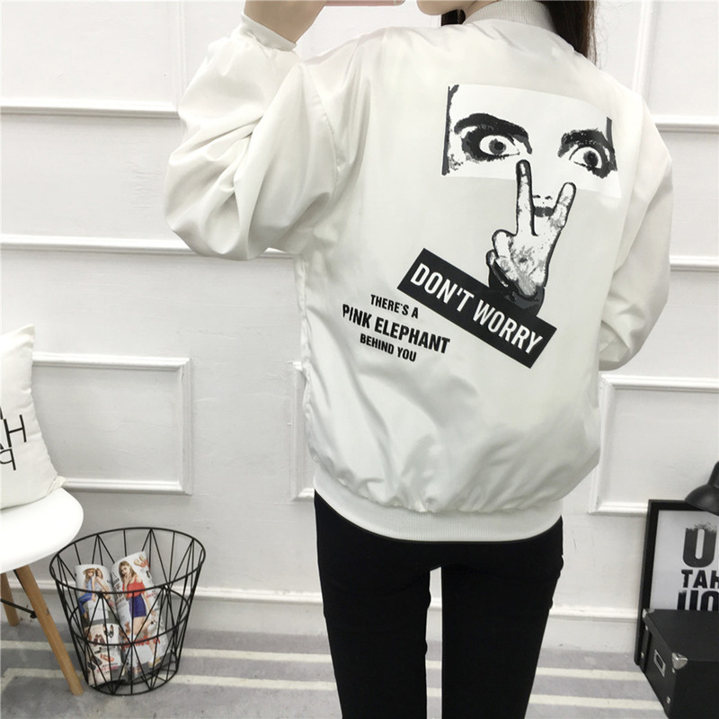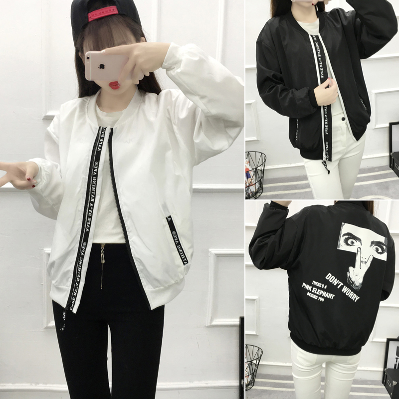 韓國bf風短外套女韓版原宿潮寬松百搭高中學生印花長袖立領棒球服