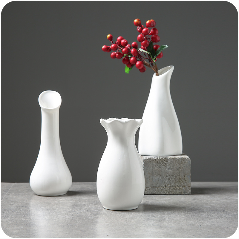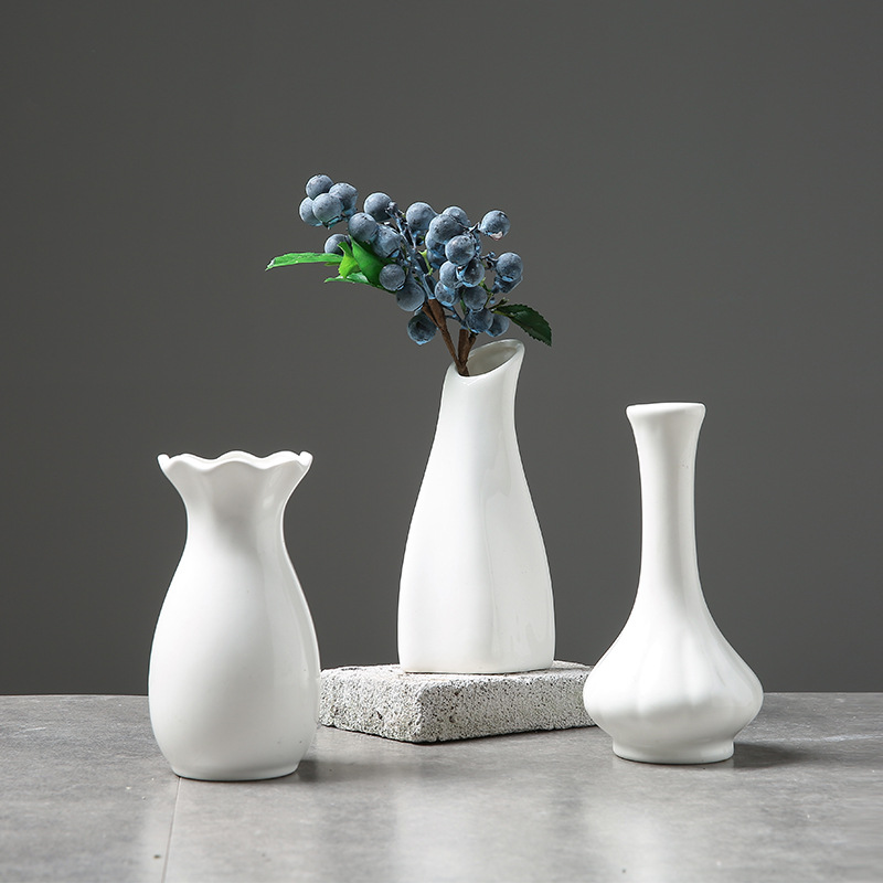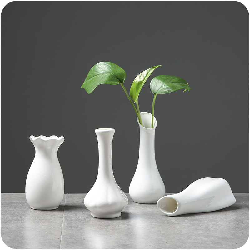 / 創意擺件陶瓷小花瓶水培花素雅白色干花插家居裝飾不規則歐式花瓶