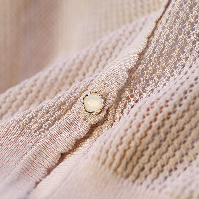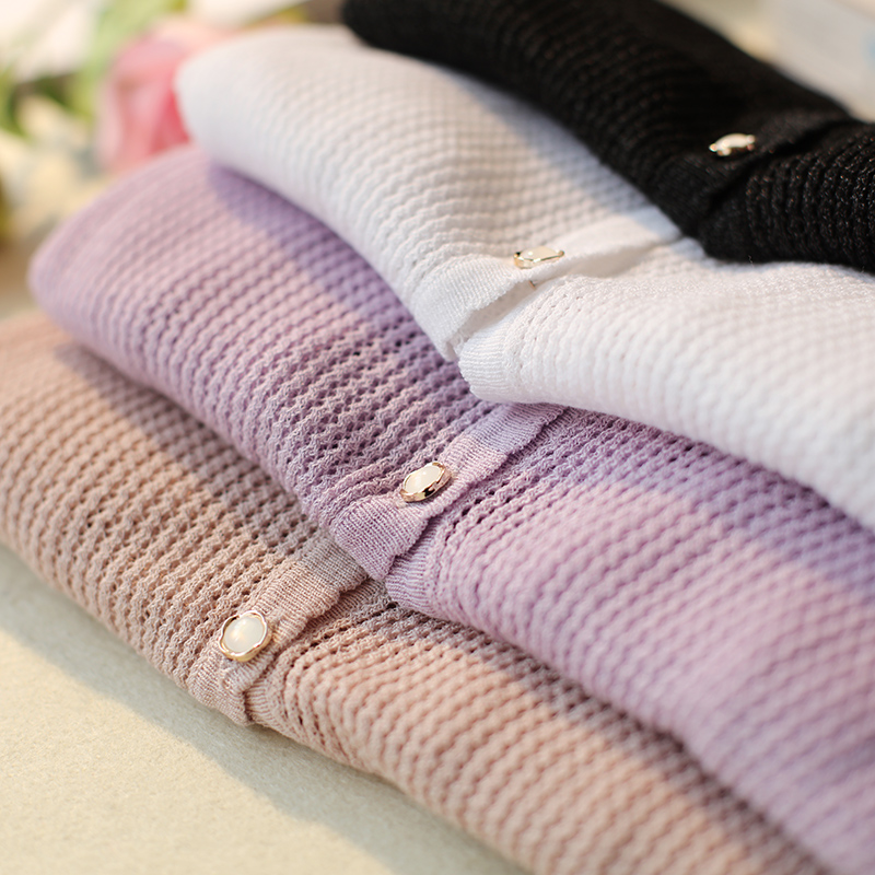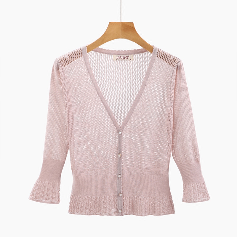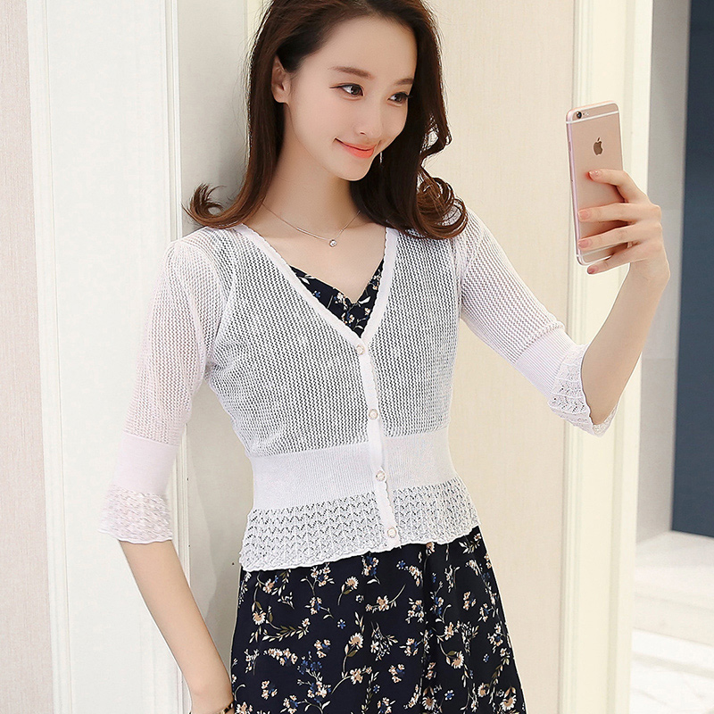 / 鏤空針織開衫女薄短款外搭七分袖披肩小開衫女夏薄款針織衫外套