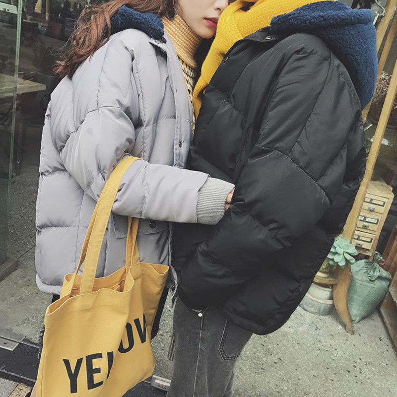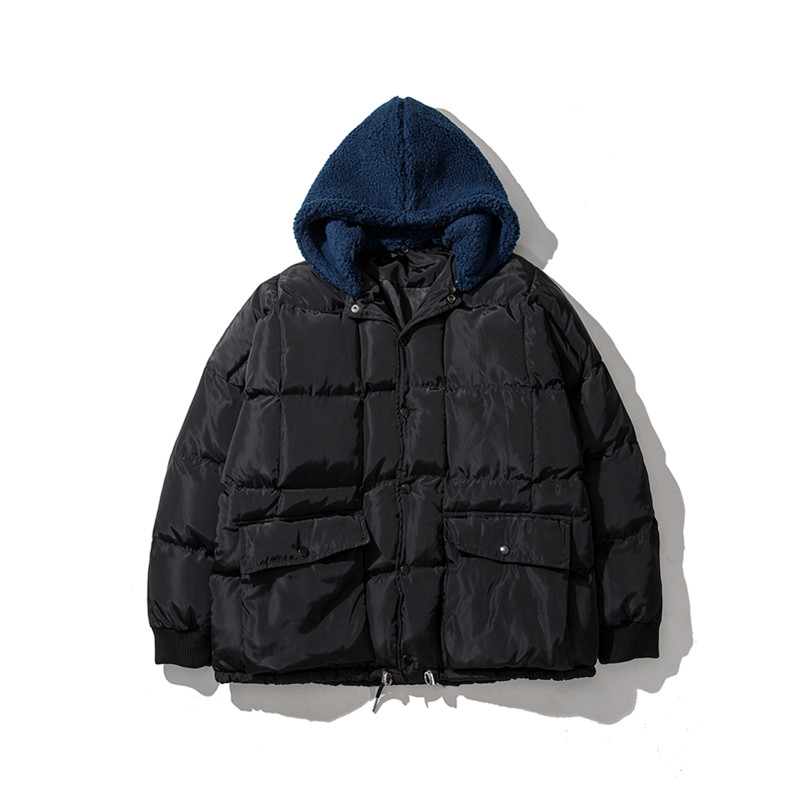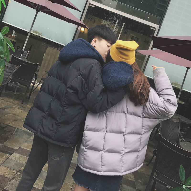 男裝港風毛可拆加厚情侶短款面包服連帽寬松棉衣男