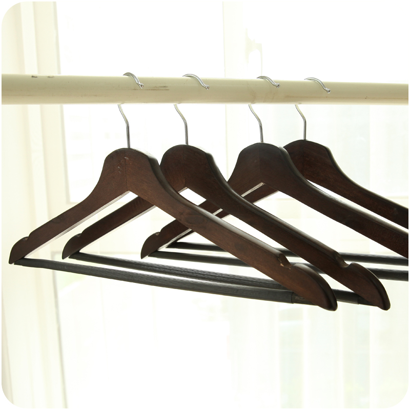 實木衣架成人服裝店兒童防滑衣服架家用木頭衣撐褲架原木色復古