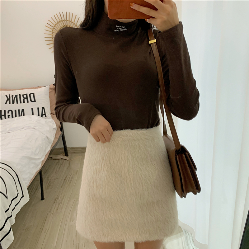 新款高領修身顯瘦加絨字母打底T恤時尚套裝A字半身裙chic兩件套女