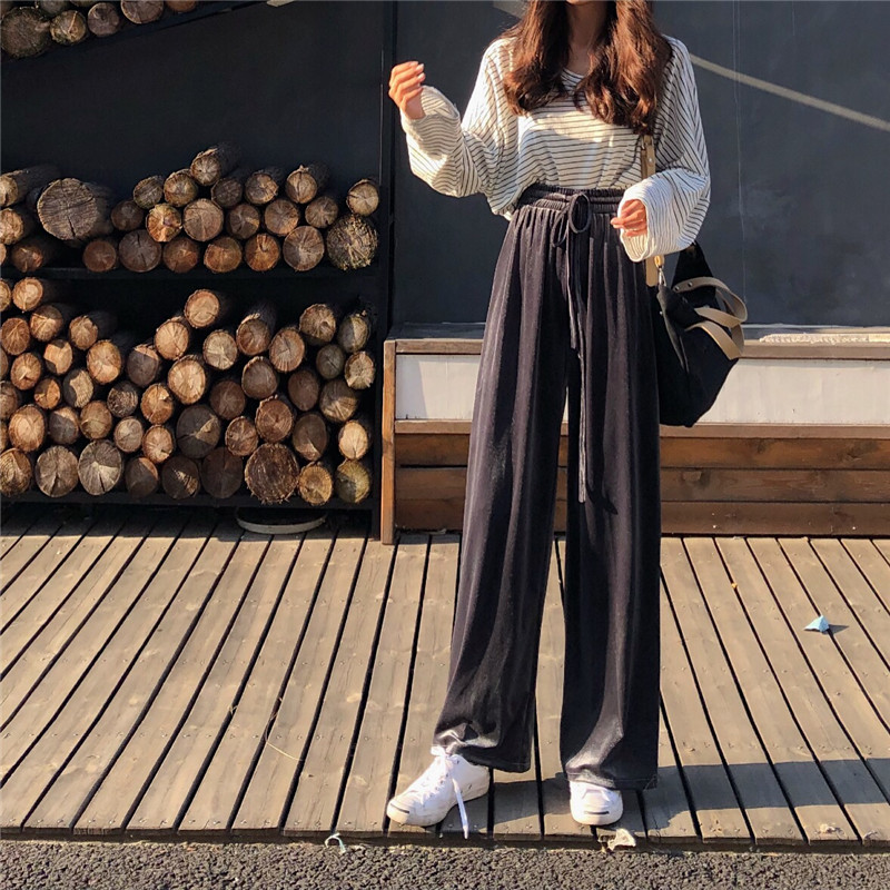 / 褲子2018新款韓版復古百搭時尚氣質chic高腰金絲絨顯瘦闊腿長褲女