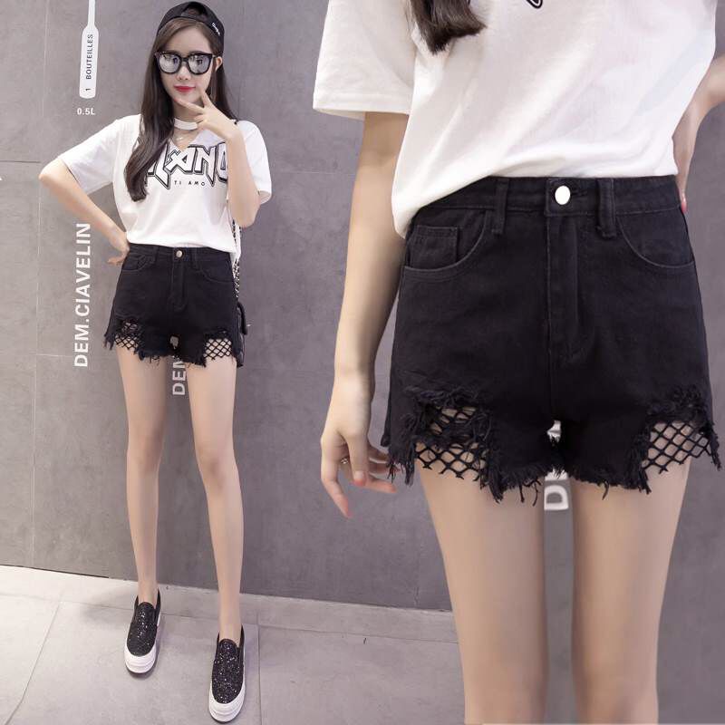 / 夏季韓版破洞牛仔短褲女漁網磨破毛邊闊腿褲白色大碼學生熱褲
