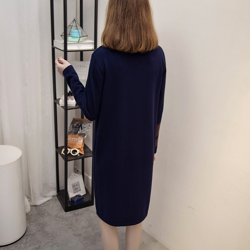 / 秋冬裝套頭圓領針織衫打底衫韓版圓領寬松拼色外套中長款毛衣裙女
