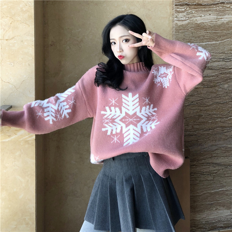 毛衣秋冬2018新款chic慵懶半高領寬松百搭套頭長袖針織衫上衣女裝