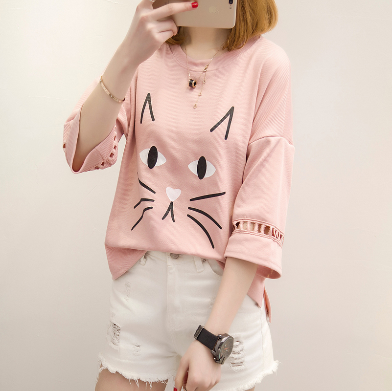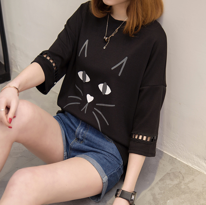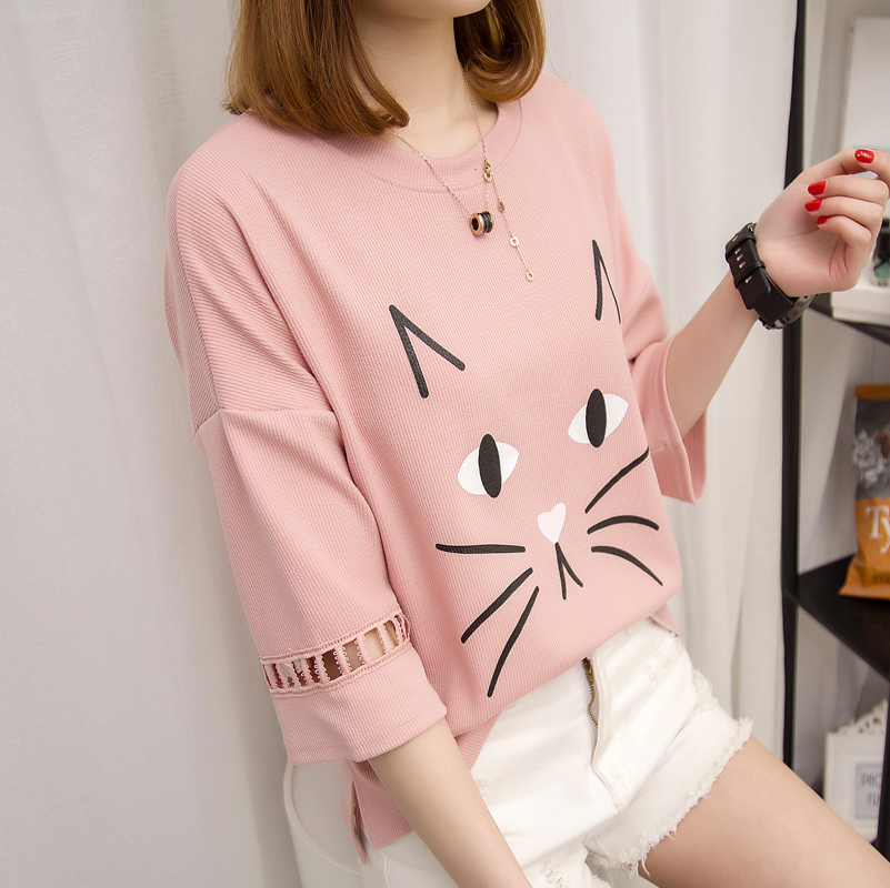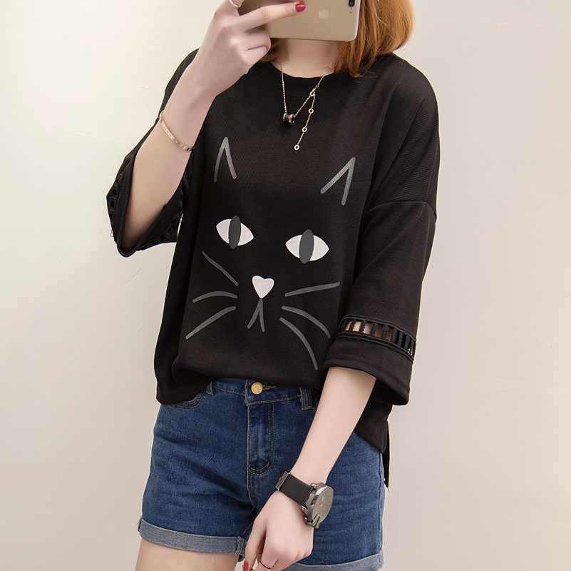 夏裝新款女裝寬松白色t恤女中長袖半袖韓版上衣女夏季體恤衫