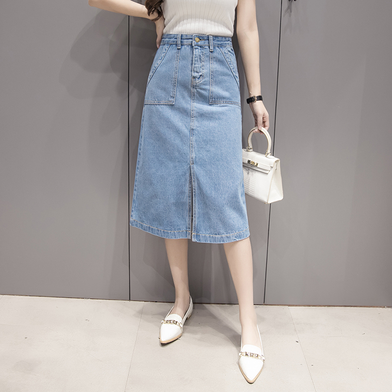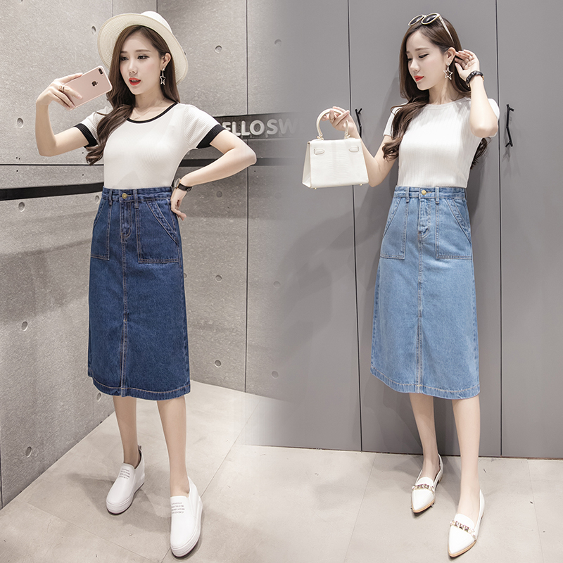 / 牛仔裙韓版高腰學院風春夏季復古修身顯瘦半身中長款長裙女學生潮