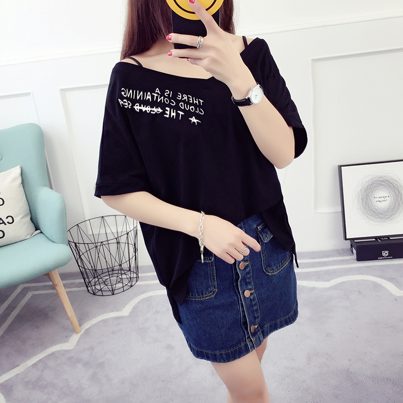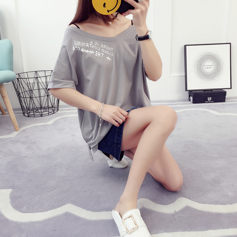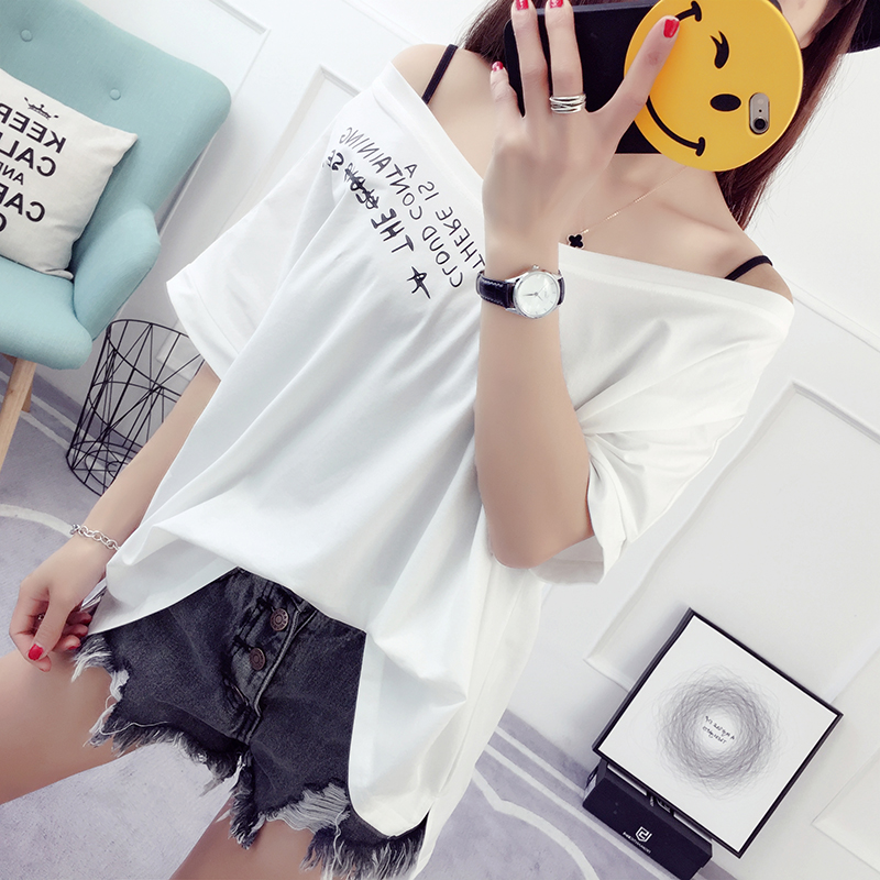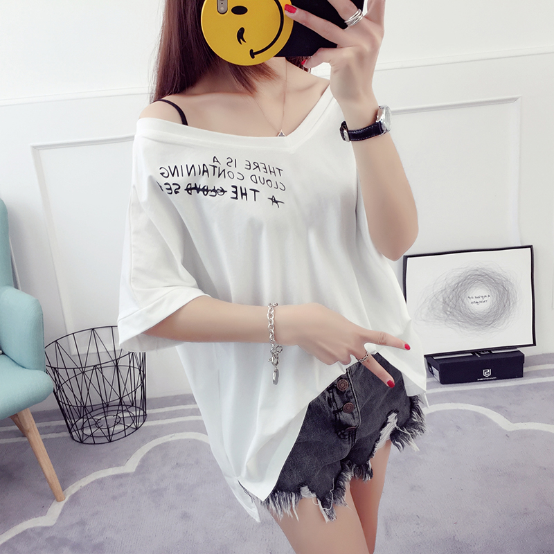 短袖v領t恤女寬松韓版學生百搭新款潮半袖夏裝露肩上衣打底衫