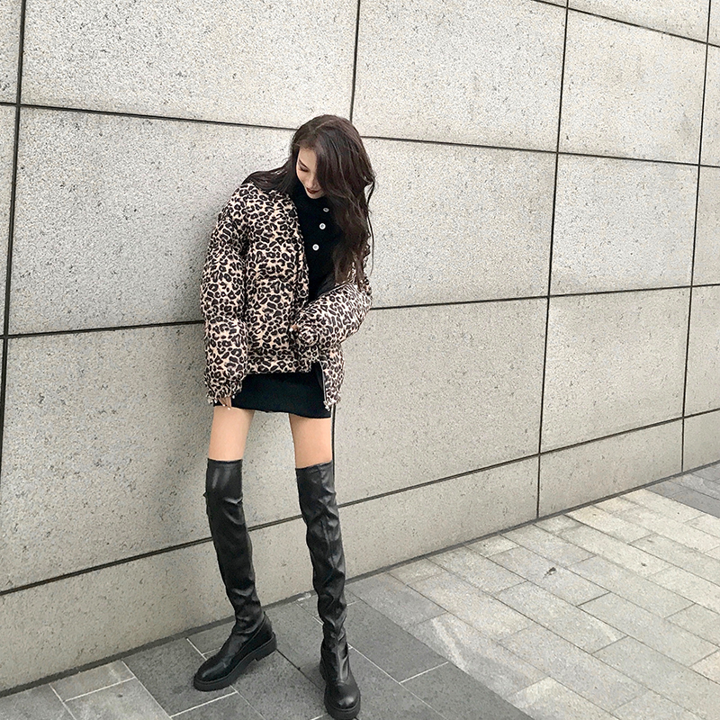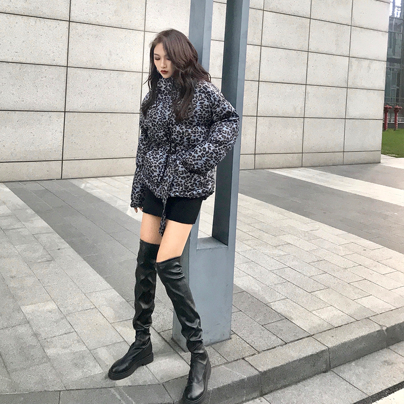 2018秋冬新款韓版加厚保暖大衣寬松豹紋時尚氣質外套長袖時尚棉服