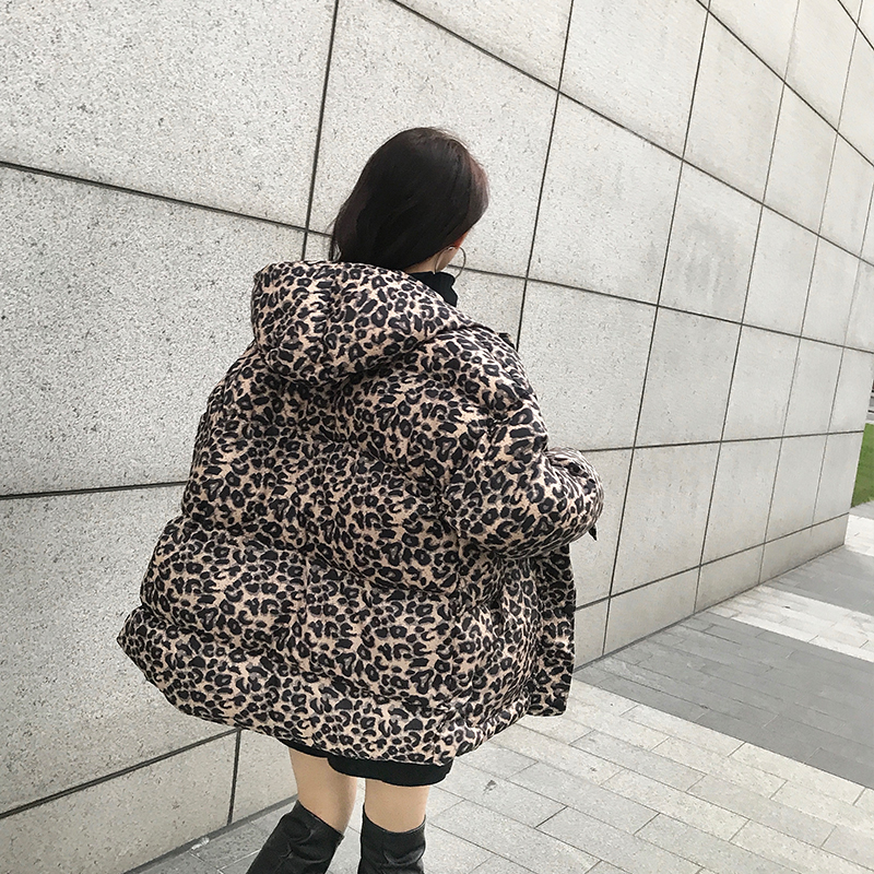 / 2018秋冬新款韓版加厚保暖大衣寬松豹紋時尚氣質外套長袖時尚棉服