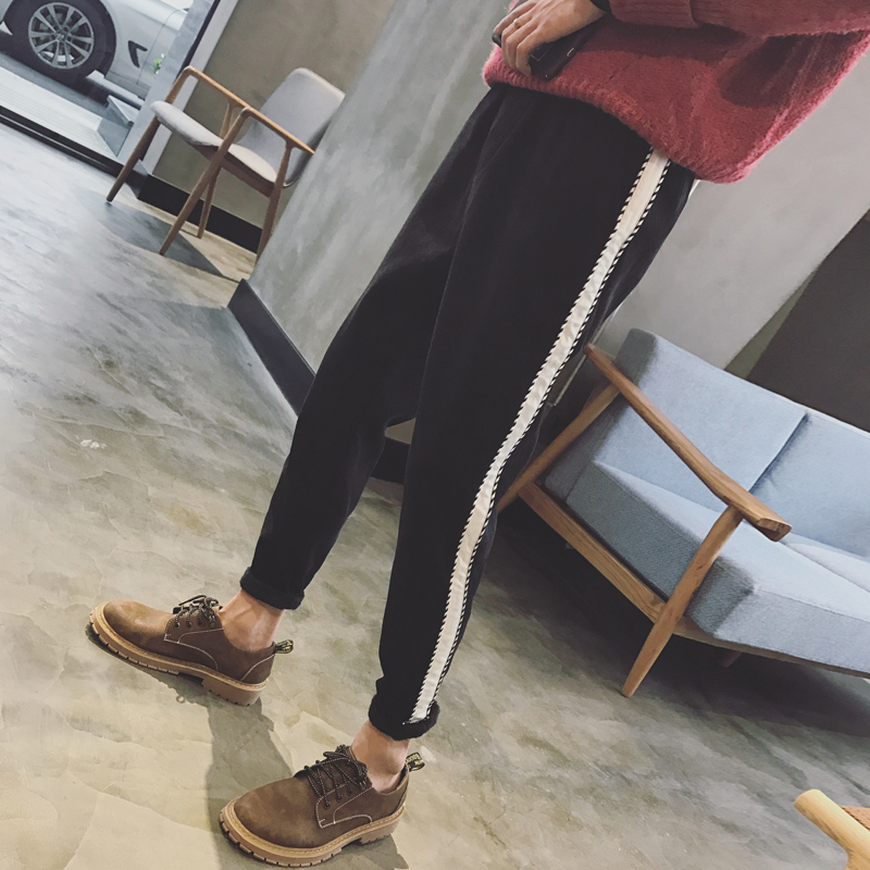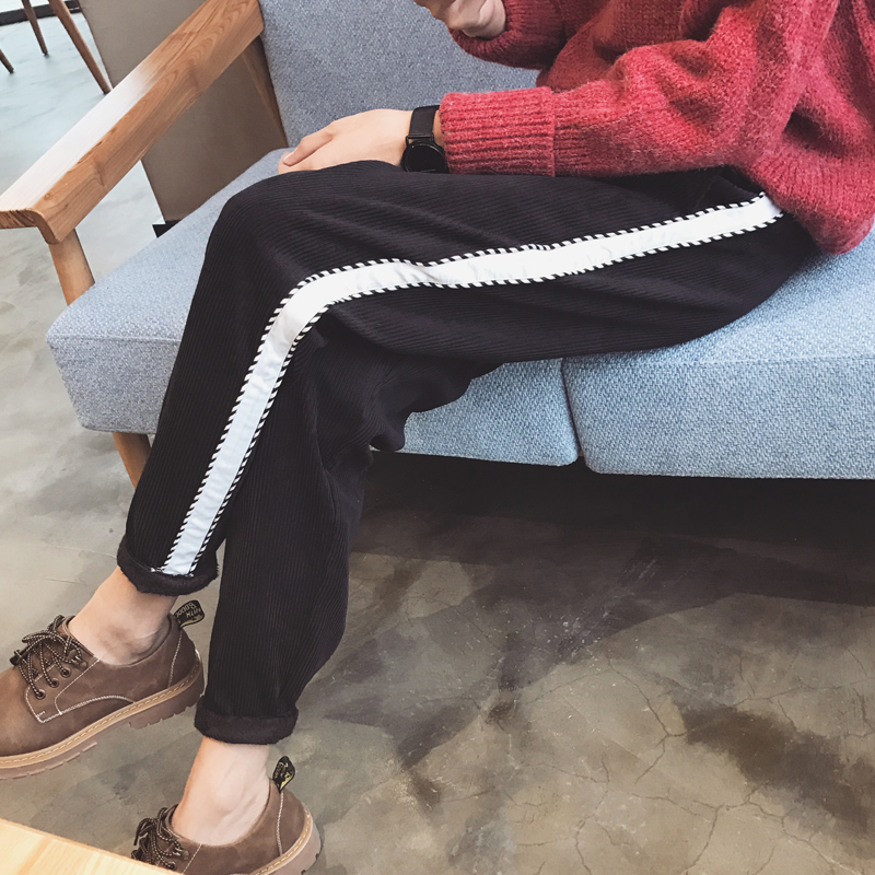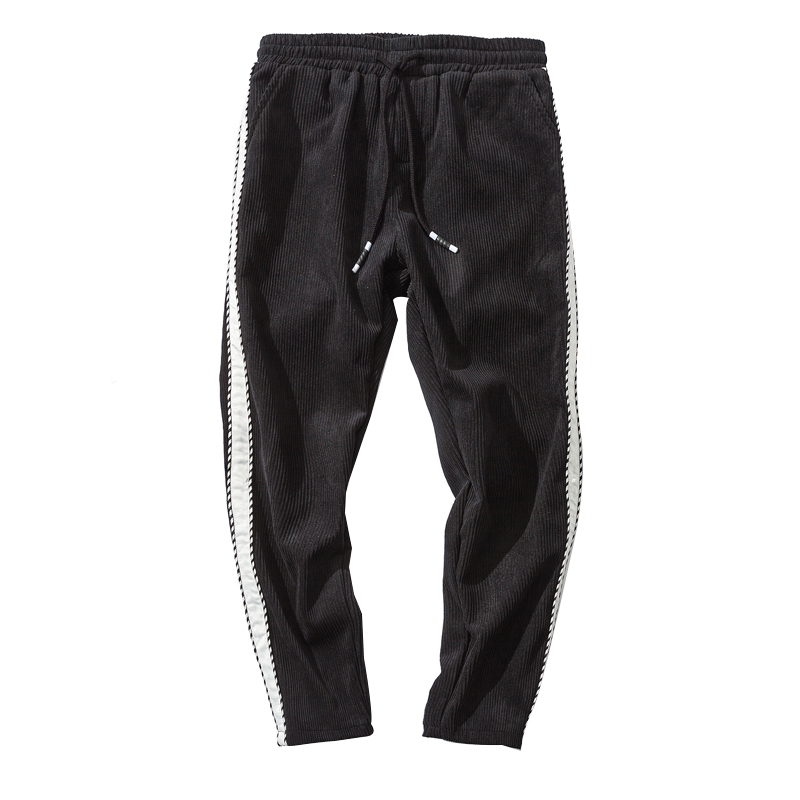 / 男裝撞色鑲邊燈芯絨加厚寬松小直腳男士錐形休閑褲