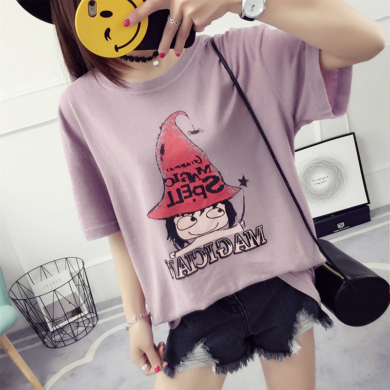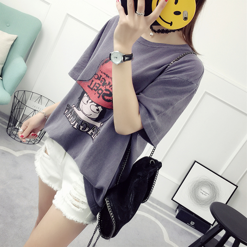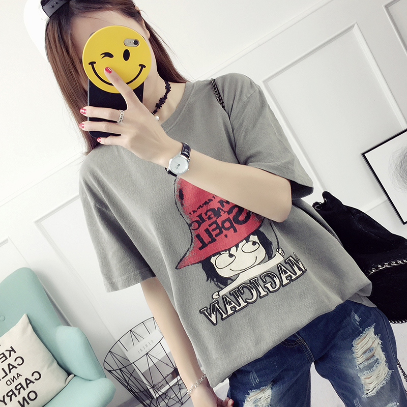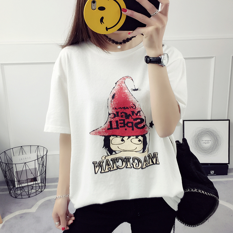 / 春裝新款韓版潮學生寬松百搭短袖T恤女裝上衣打底衫印花卡通