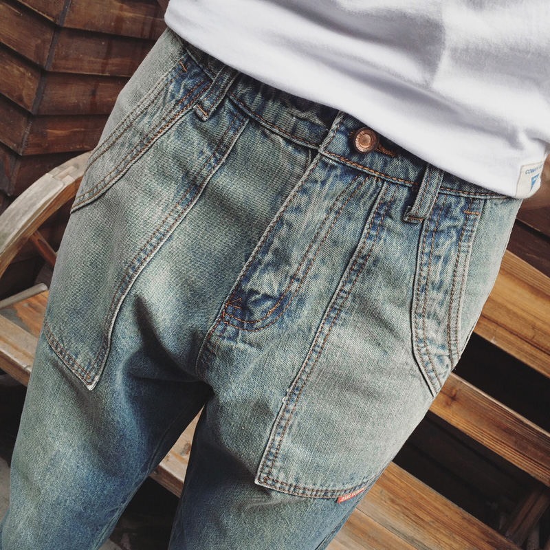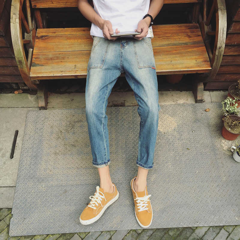 港風男裝簡單水洗修身小腳牛仔褲日韓港風九分褲秋