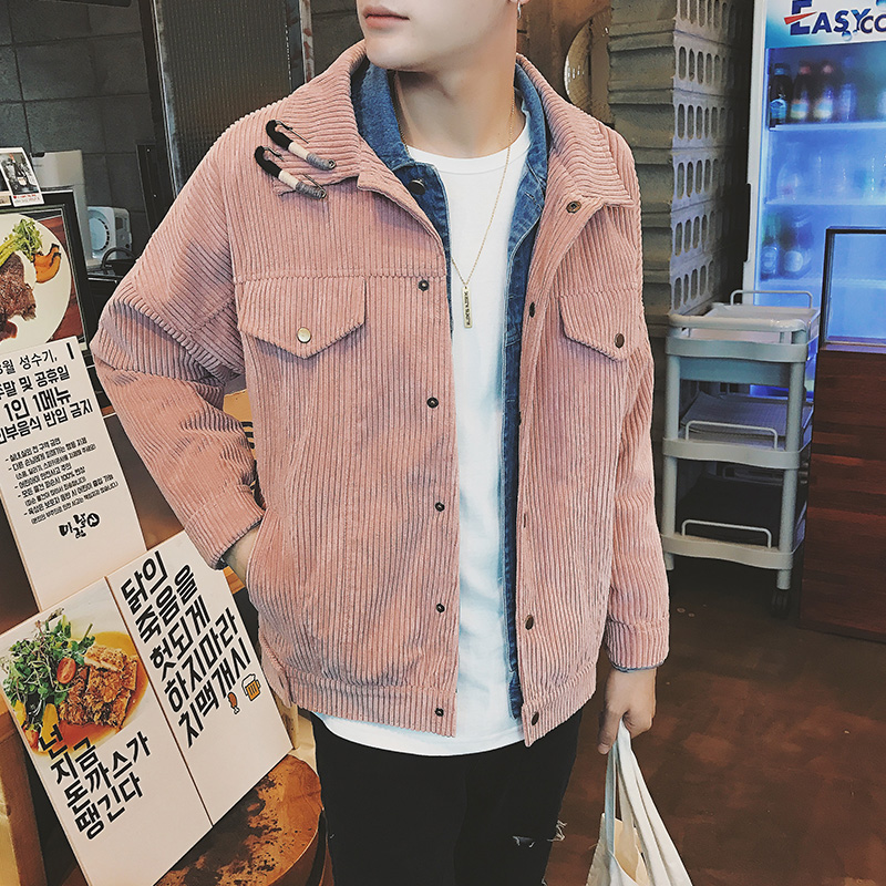 男裝別針裝飾韓版燈芯絨男士短款寬松春裝夾克外套