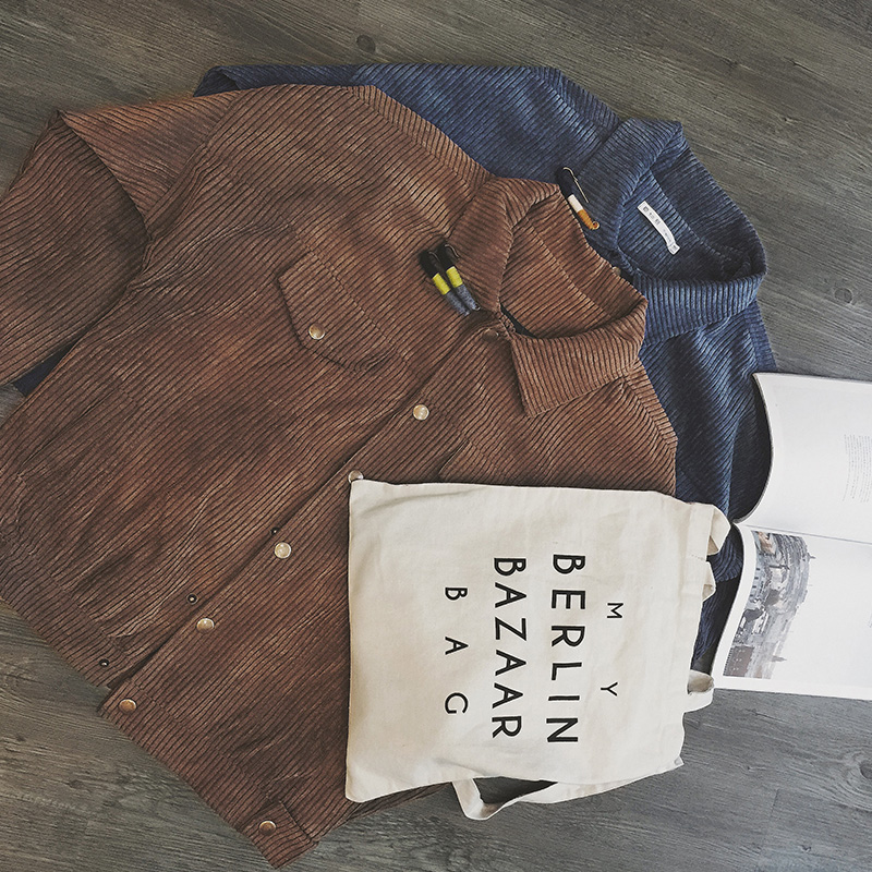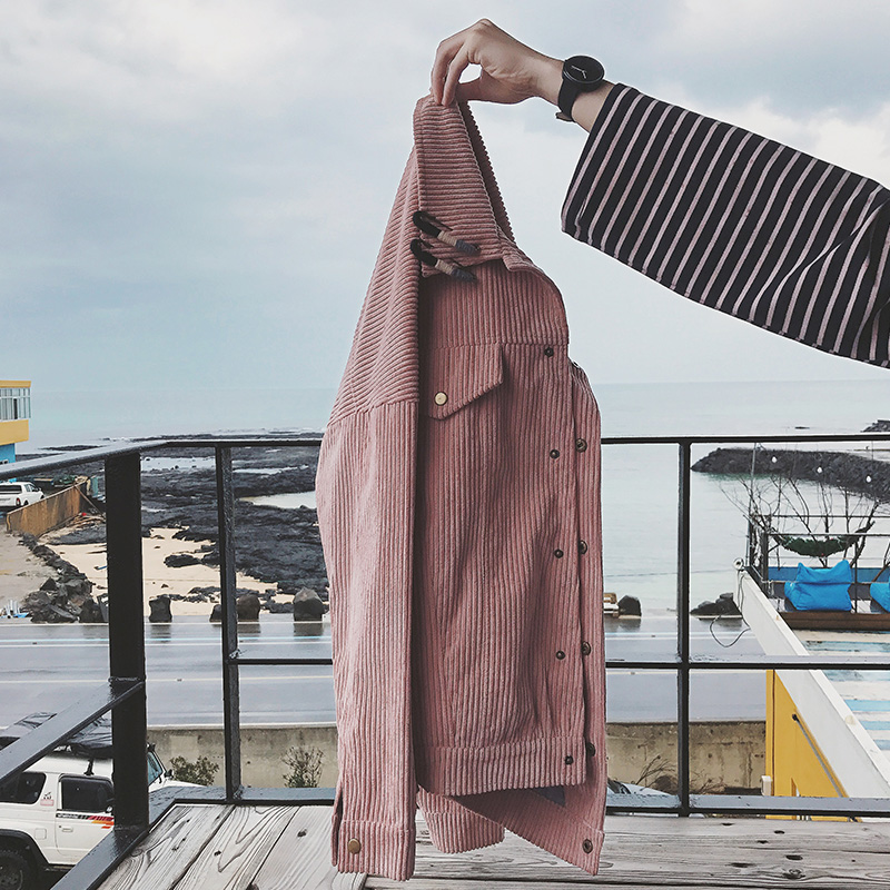 / 男裝別針裝飾韓版燈芯絨男士短款寬松春裝夾克外套