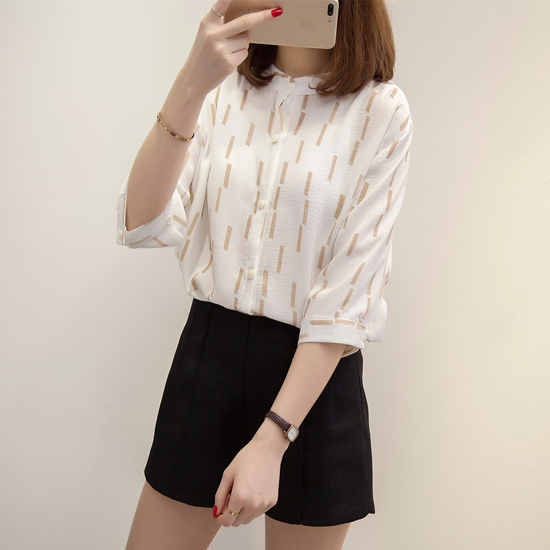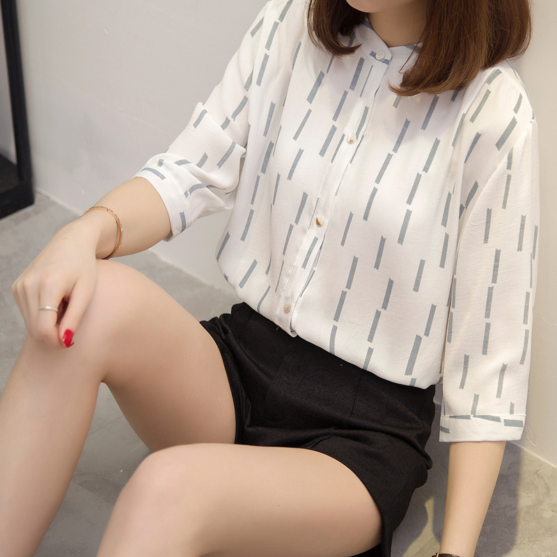 / 夏裝新款女小清新白襯衫女chic半袖外套韓范條紋襯衣上衣女夏
