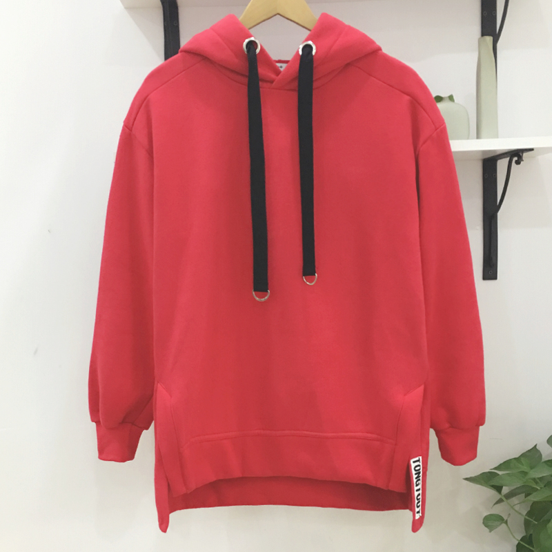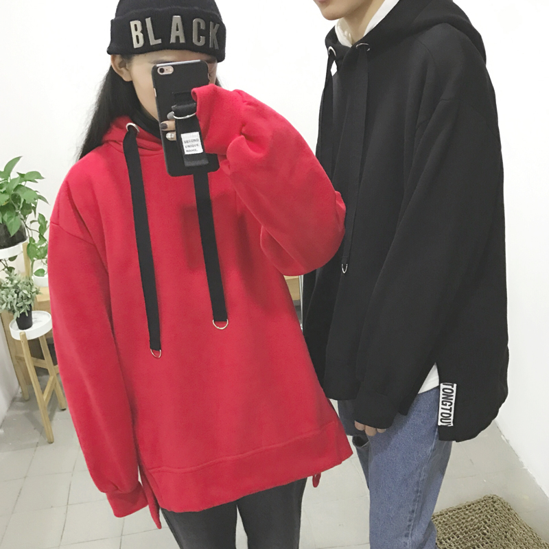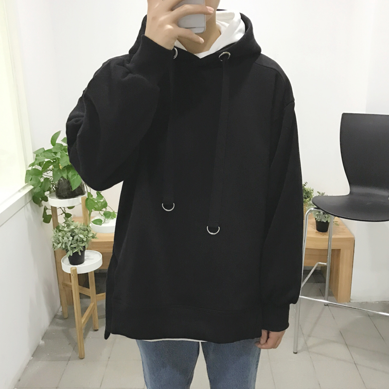 男裝港風側開叉連帽寬松貼布衛衣韓版情侶套頭衛衣