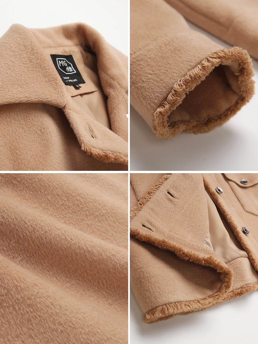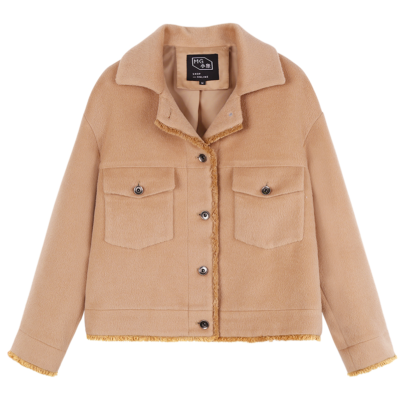 MG小象短款毛絨外套女寬松復古拼接夾克秋冬2018新款氣質駝色上衣