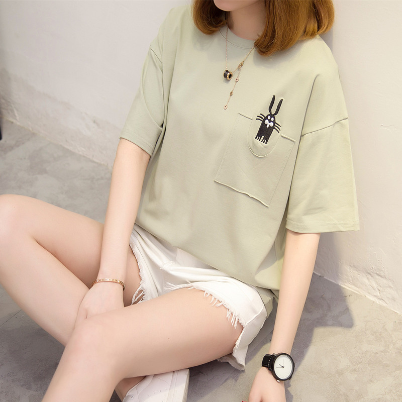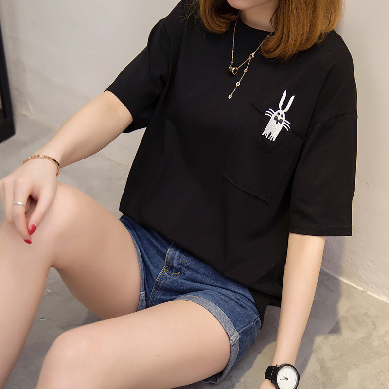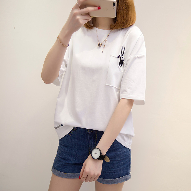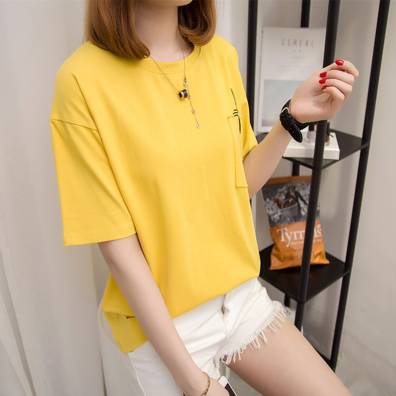 短袖女t恤韓版寬松打底體恤衫夏季新款潮大碼拼色百搭女上衣