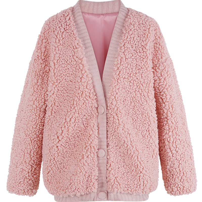 MG小象港味休閑外套女冬長袖2018新款復古學生寬松毛絨保暖上衣潮