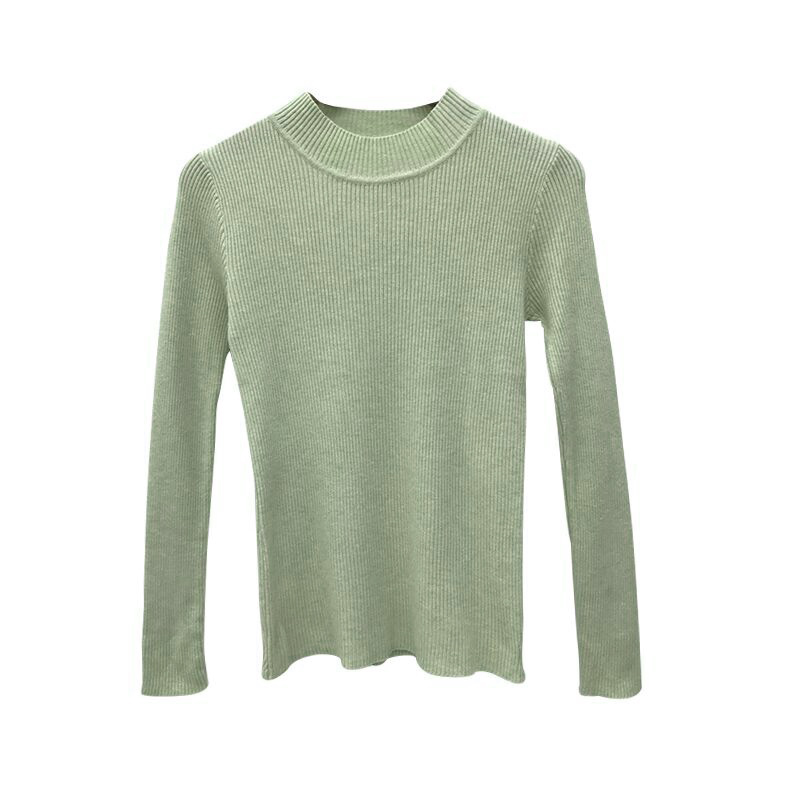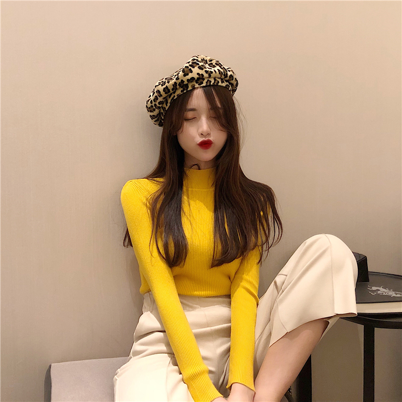 糖果色新款半高圓領顯瘦上衣韓版學院風長袖修身復古chic針織衫女