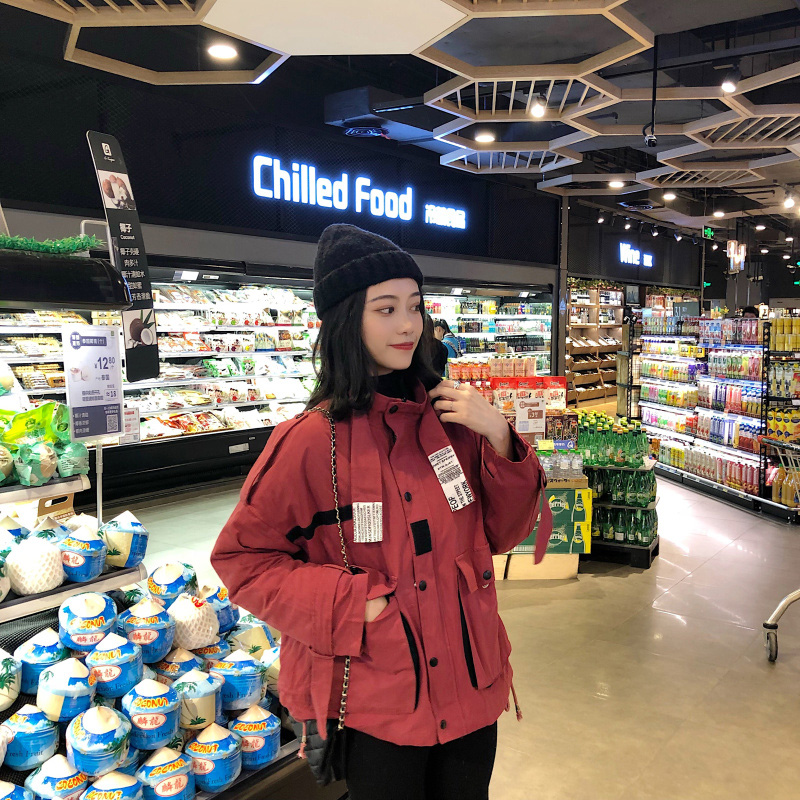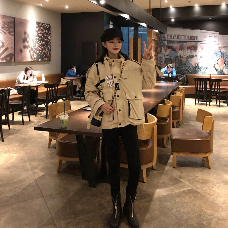 / 秋冬女裝新款韓版chic港味復古工裝寬松休閑加絨加厚長袖開衫外套