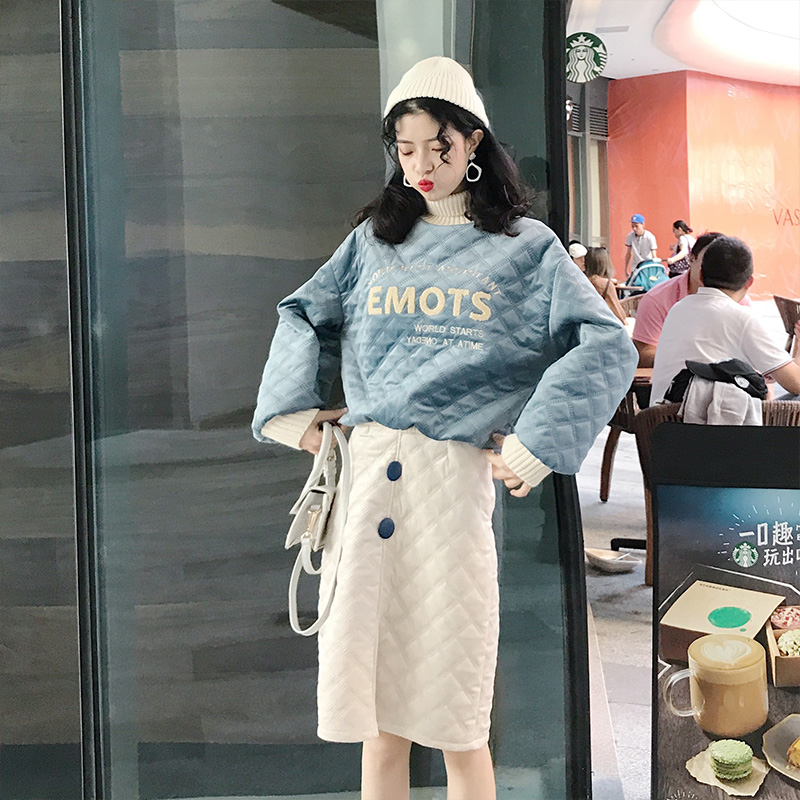 2018秋冬季韓版百搭新款兩件套時尚夾棉加厚衛衣包臀半身裙套裝女