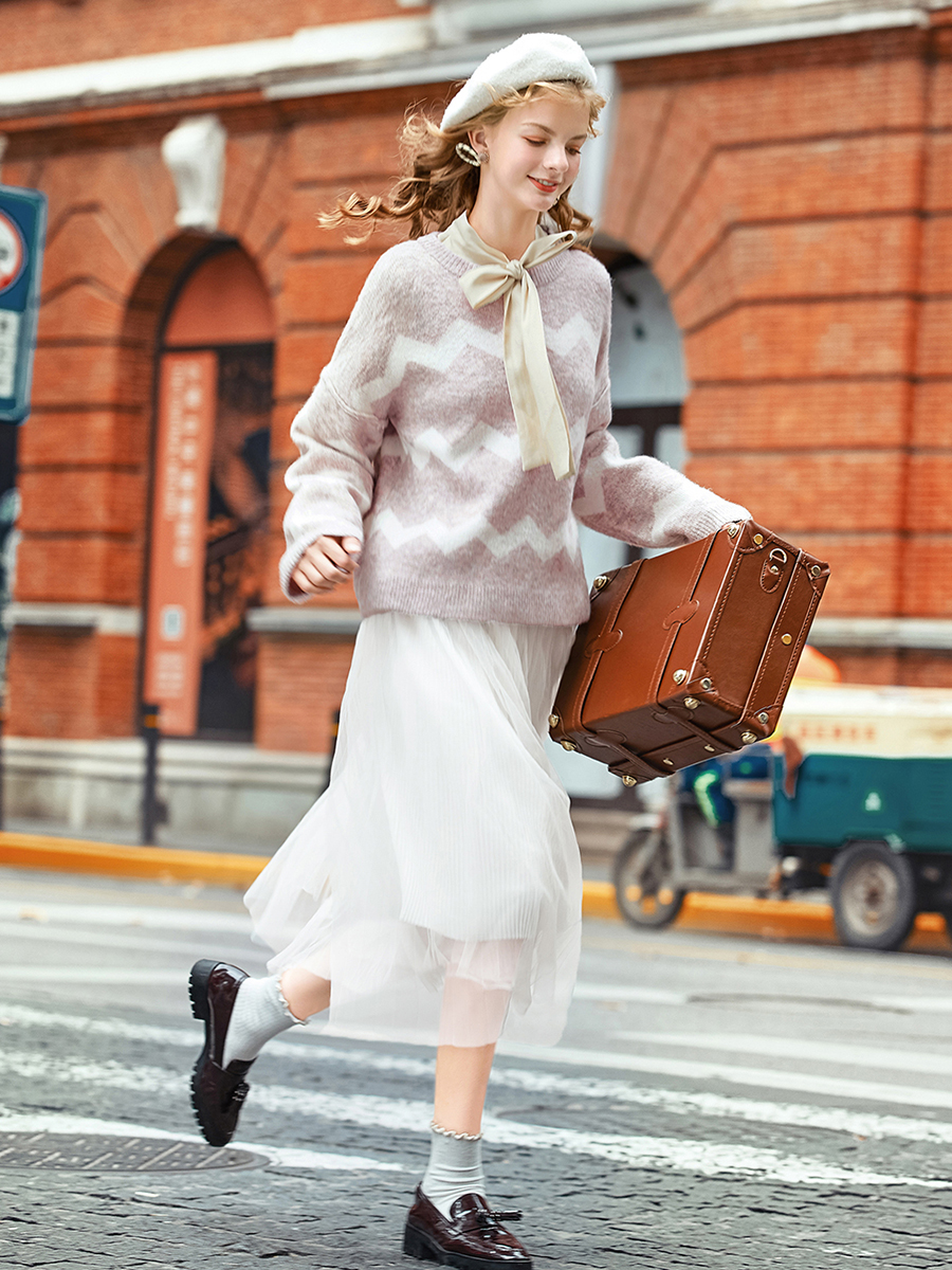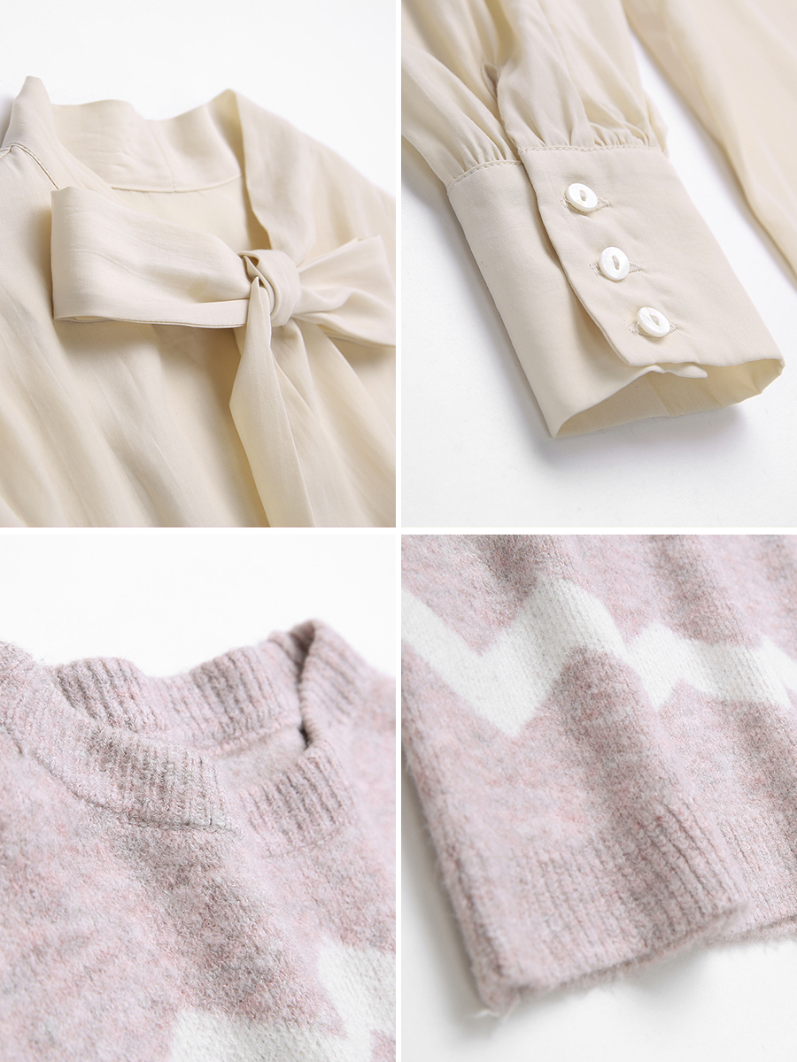襯衫米色|毛衣粉色