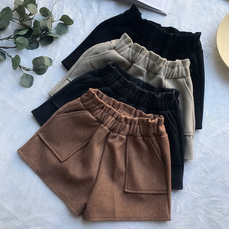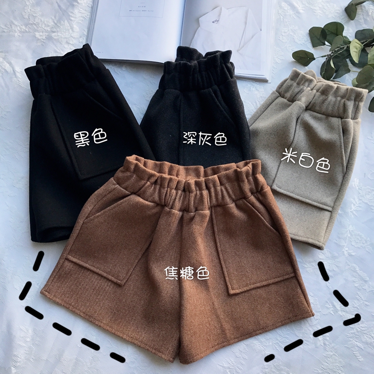 / 2018秋冬新款chic褲子韓版高腰顯瘦闊腿褲百搭直筒毛呢休閑短褲女