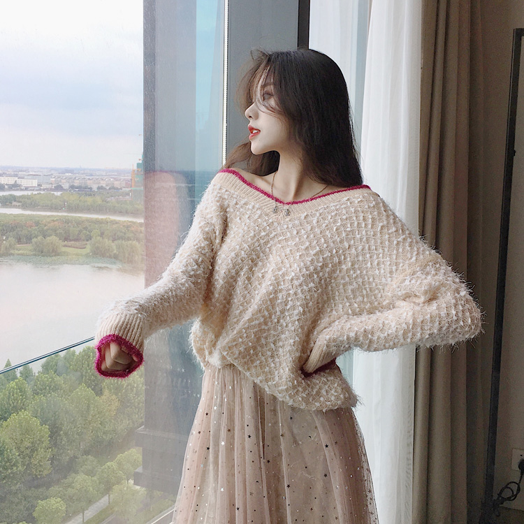 / 網紅同款設計感甜美百搭露肩毛衣星星半身裙港風時尚套裝兩件套女