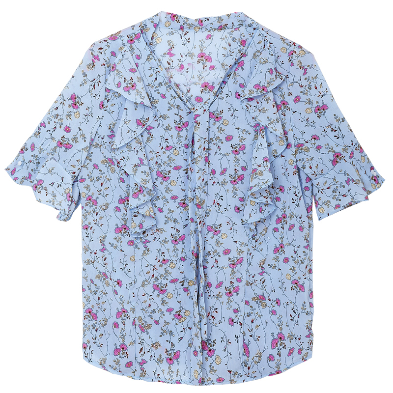 雪紡的料子,面料是有些透的哦,可以搭配吊帶衫/抹胸做打底