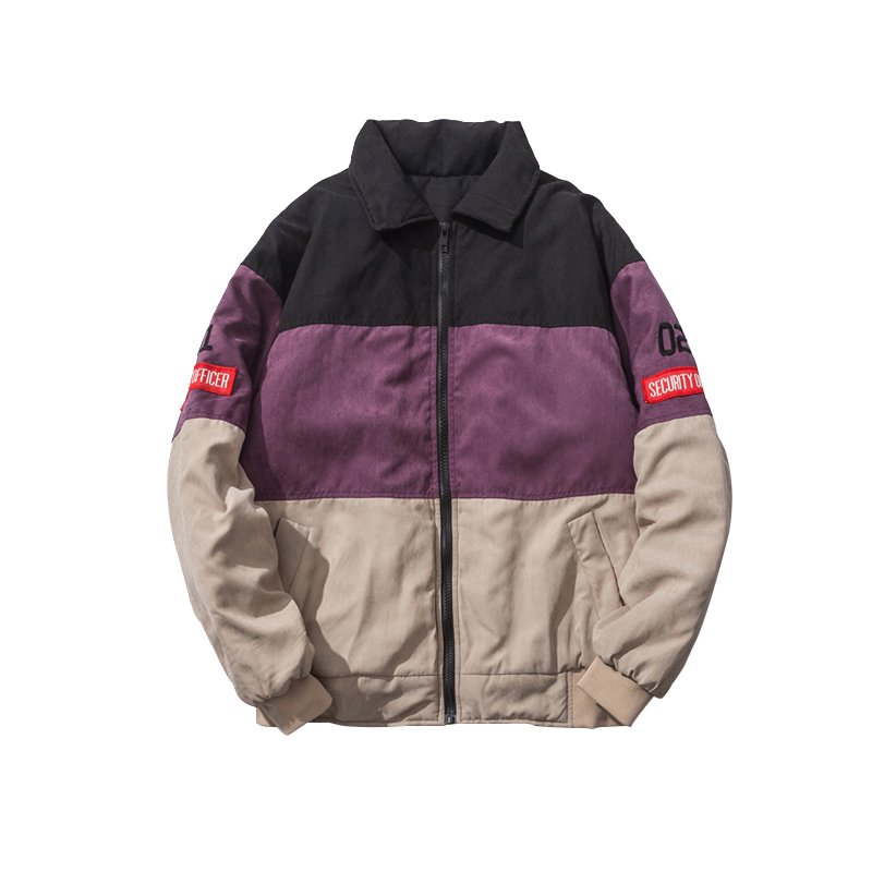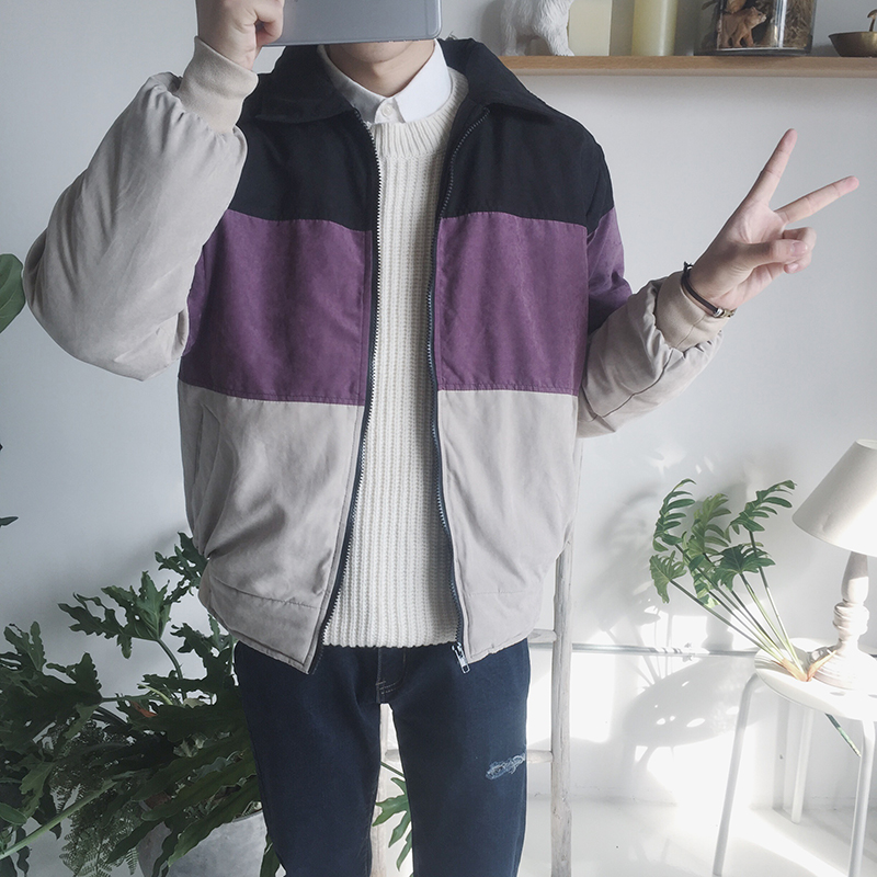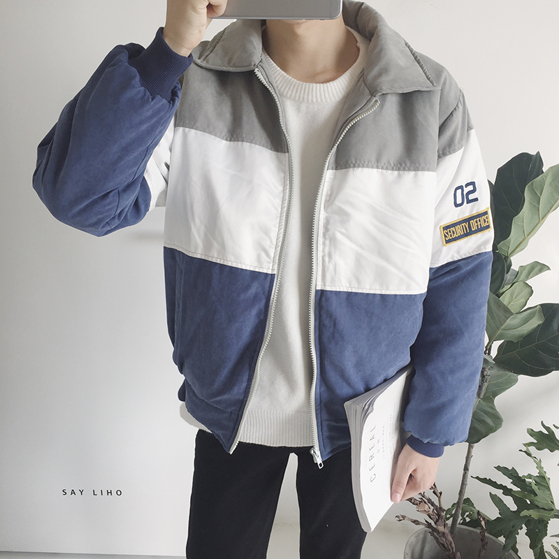 冬裝新款日系拼色棉服繡標翻領韓版男士休閑棉衣