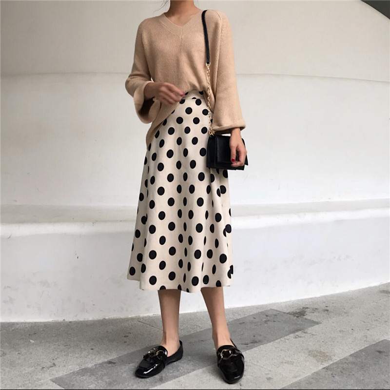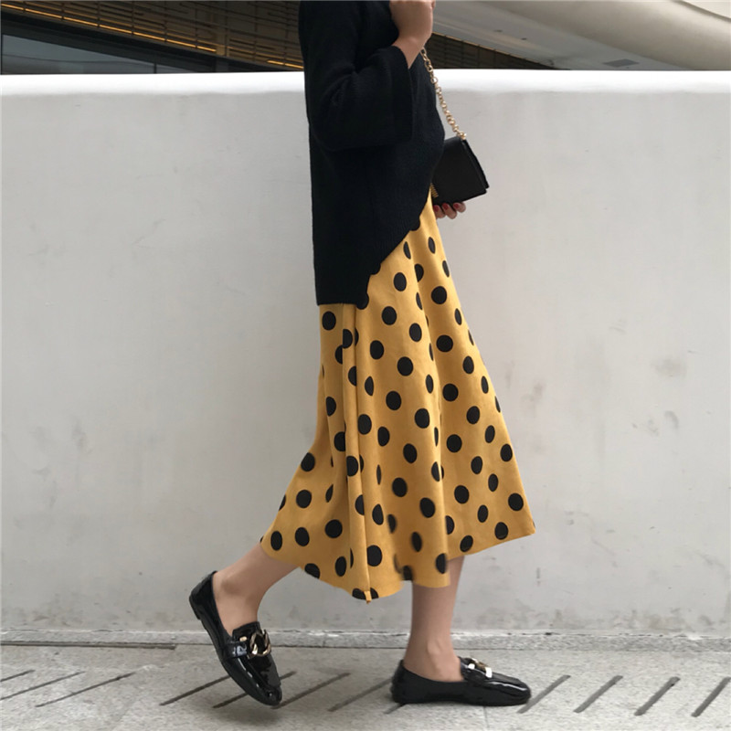 / 2018新款韓版秋冬季chic風女A字裙高腰百搭時尚中長款波點半身裙