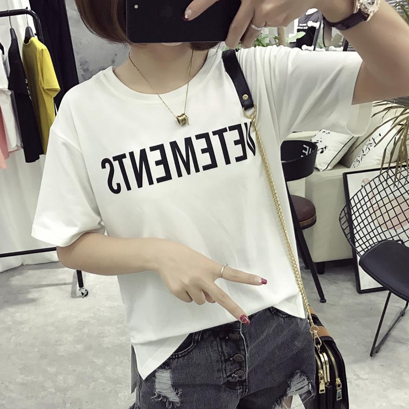 / 學生春夏裝潮韓版上衣圓領短袖字母T恤女裝套頭寬松大碼體恤