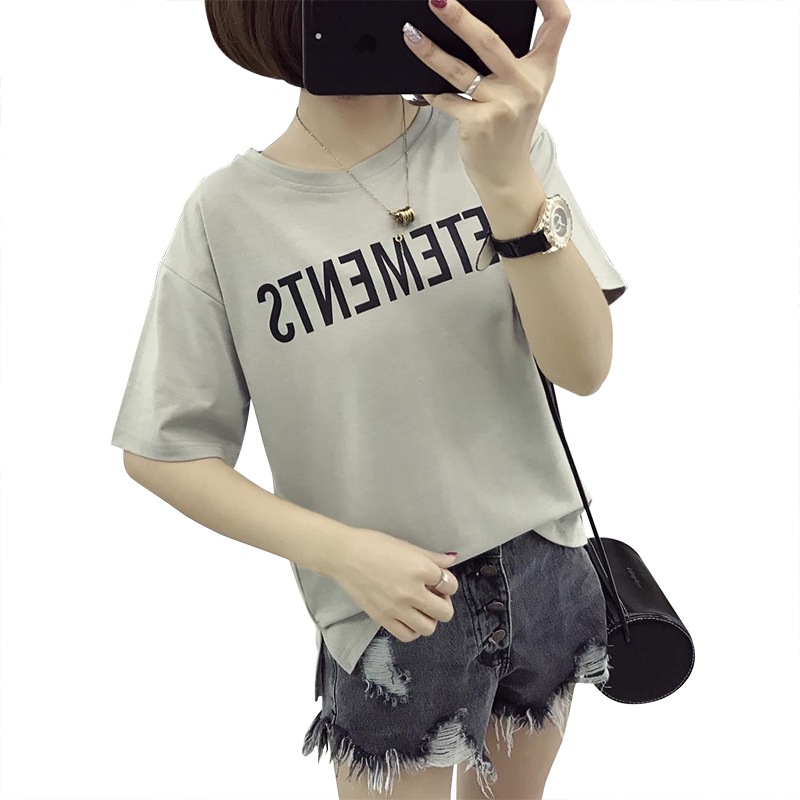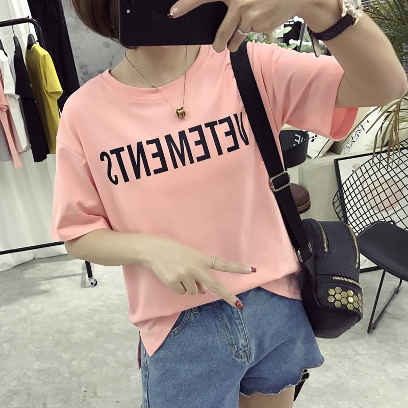 學生春夏裝潮韓版上衣圓領短袖字母T恤女裝套頭寬松大碼體恤