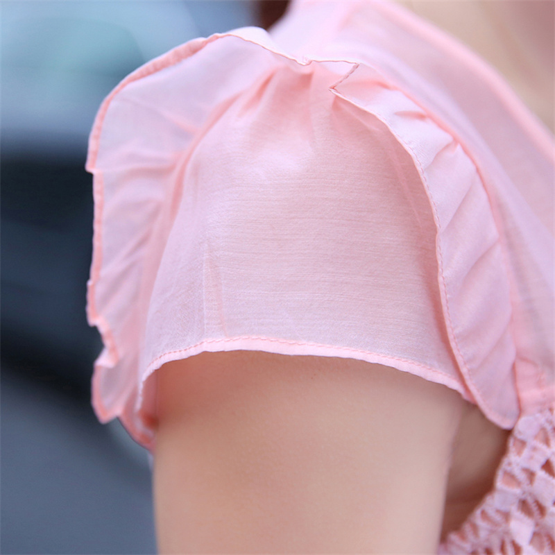 / 夏裝女套裝2017新款休閑兩件套蕾絲衫短袖上衣雪紡衫女短褲套裝女