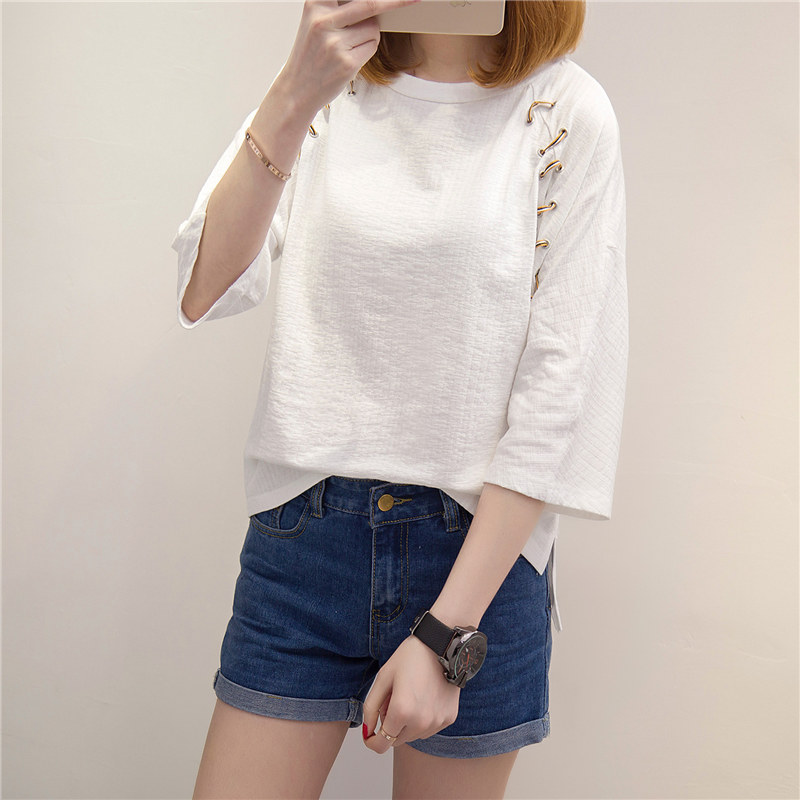 / 白色t恤女中長袖寬松短袖上衣女夏新款韓版打底體恤小衫百搭