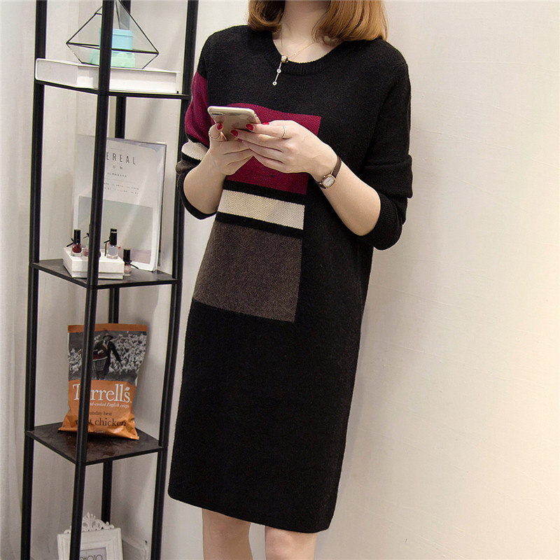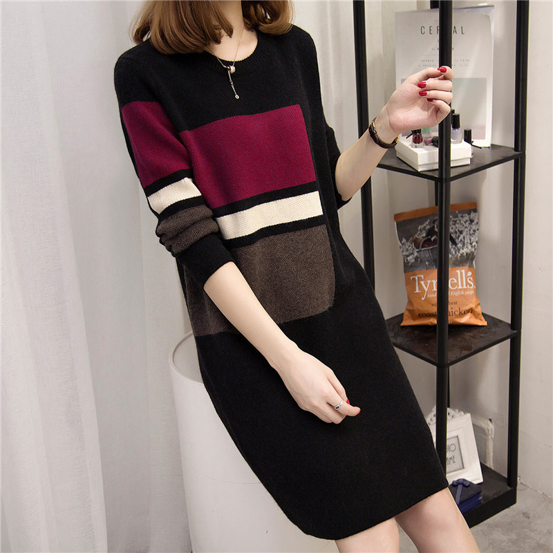 新款韓版潮冬季女裝上衣打底衫針織衫長袖套頭中長款毛衣秋冬