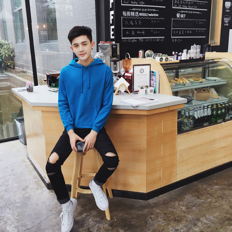 / 新款秋裝休閑純色毛圈大碼韓版男士連帽衛衣外套
