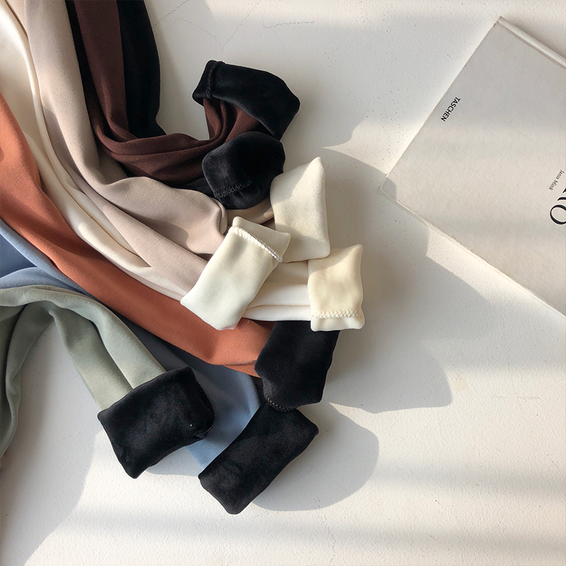 chic韓風加絨加厚秋冬套頭新款百搭時尚上衣修身長袖打底衫T恤女