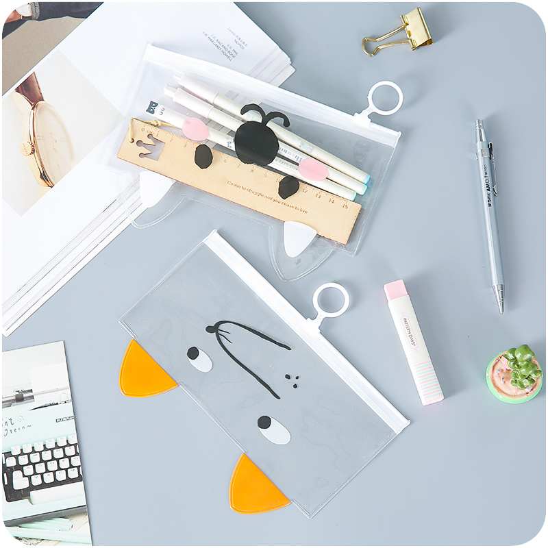 / 韓國文具透明PVC印花卡通可愛筆袋文具袋鉛筆盒眼鏡盒收納袋防水