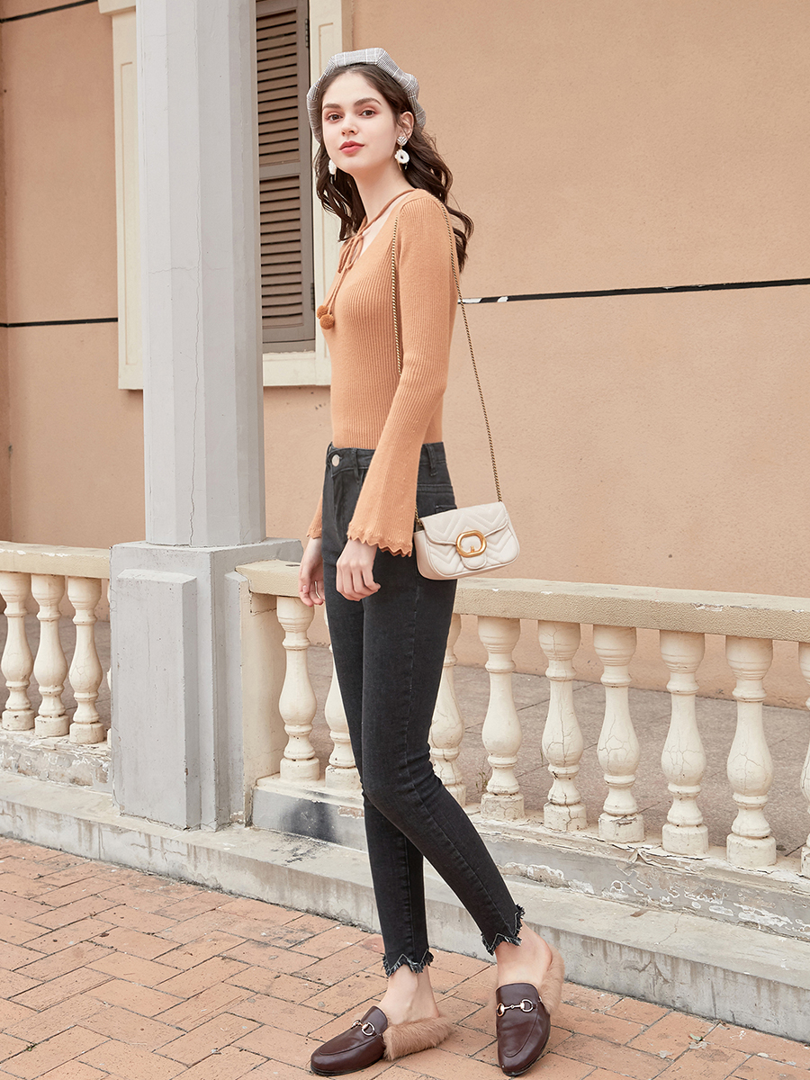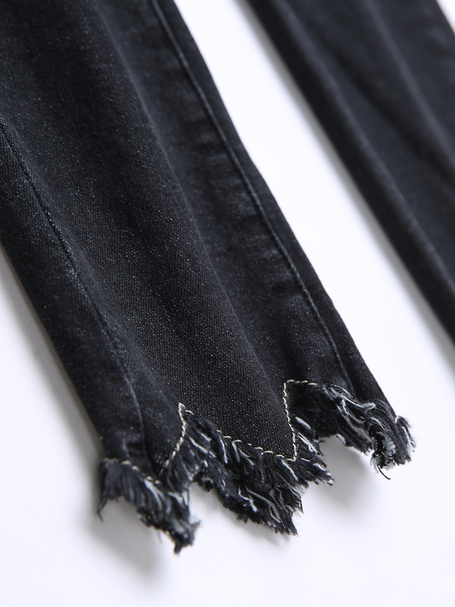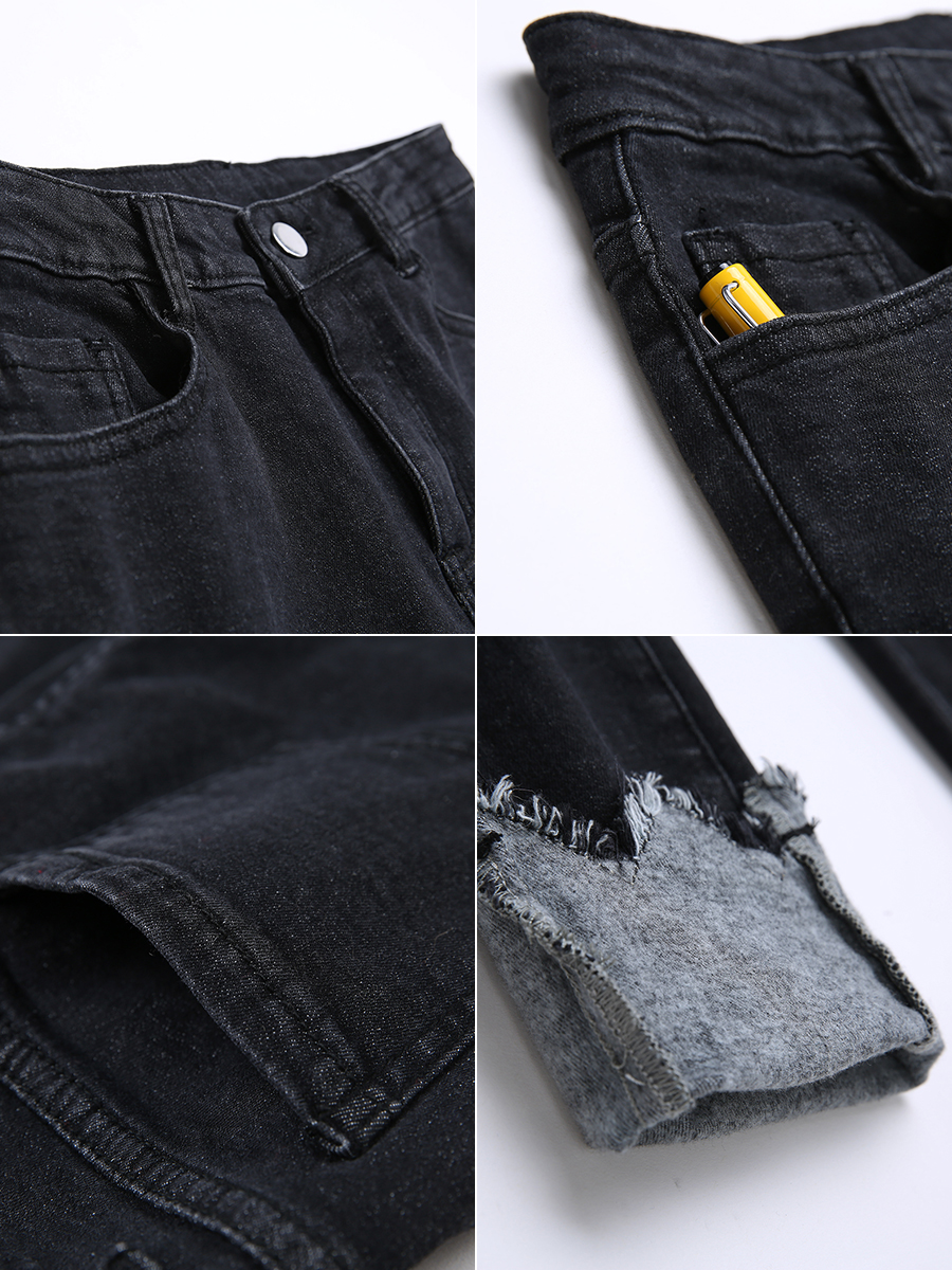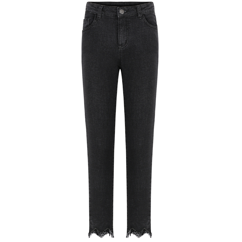 MG小象深色緊身牛仔褲女2018新款時尚不規則小腳褲冬季高腰褲子潮