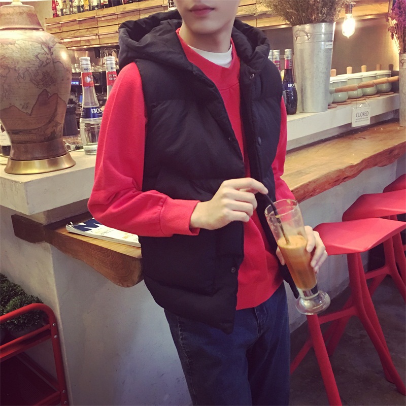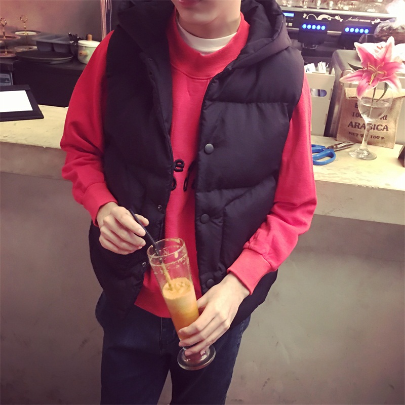 / 秋冬男裝韓版加厚高領棉衣雙排扣面包服男無袖連帽馬甲外套
