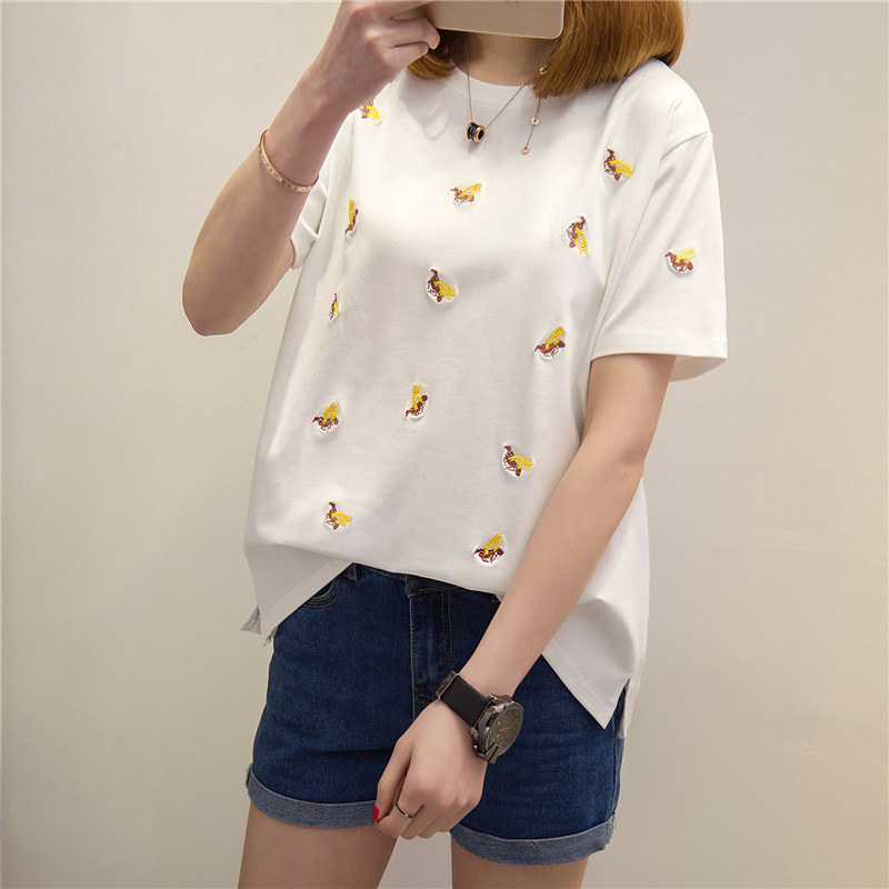 夏裝新款女裝寬松t恤女短袖純色打底體恤衫上衣女夏韓版百搭