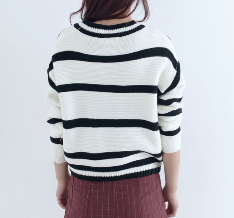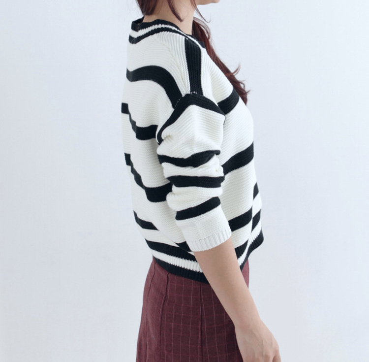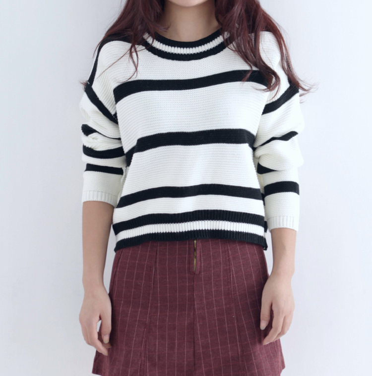 / 秋冬新款寬松短款條紋女裝毛衣上衣韓版套頭長袖打底針織衫外套女