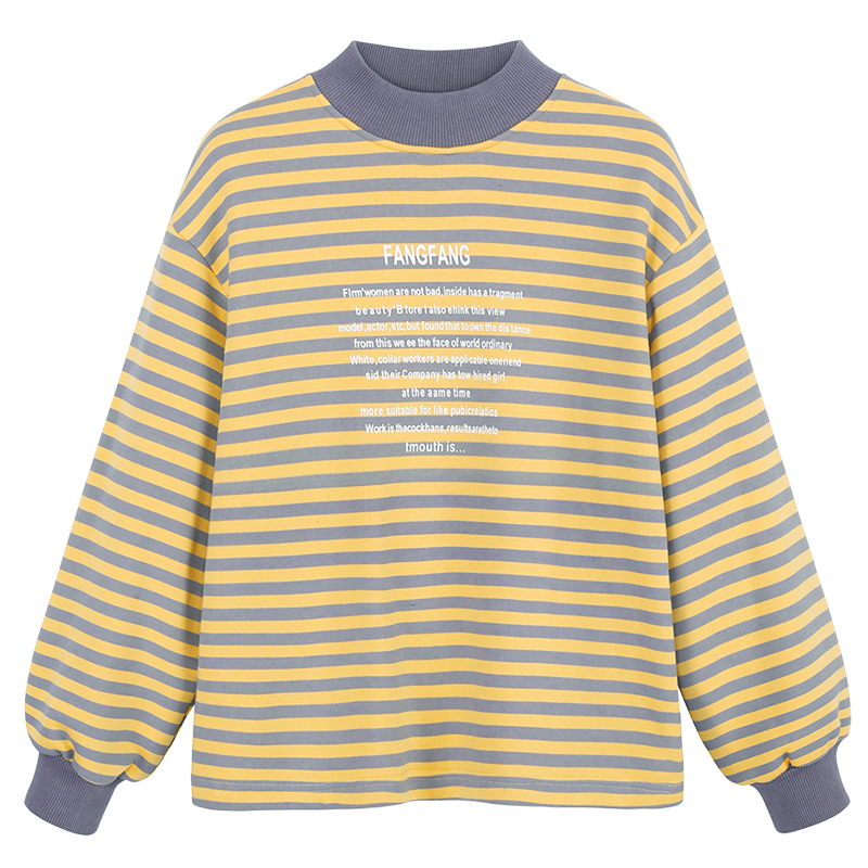 MG小象半高領條紋衛衣女寬松休閑外套冬季新款學生長袖套頭上衣潮