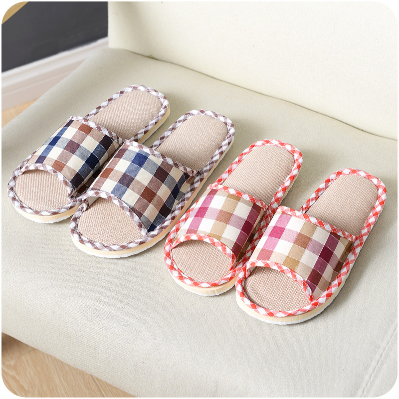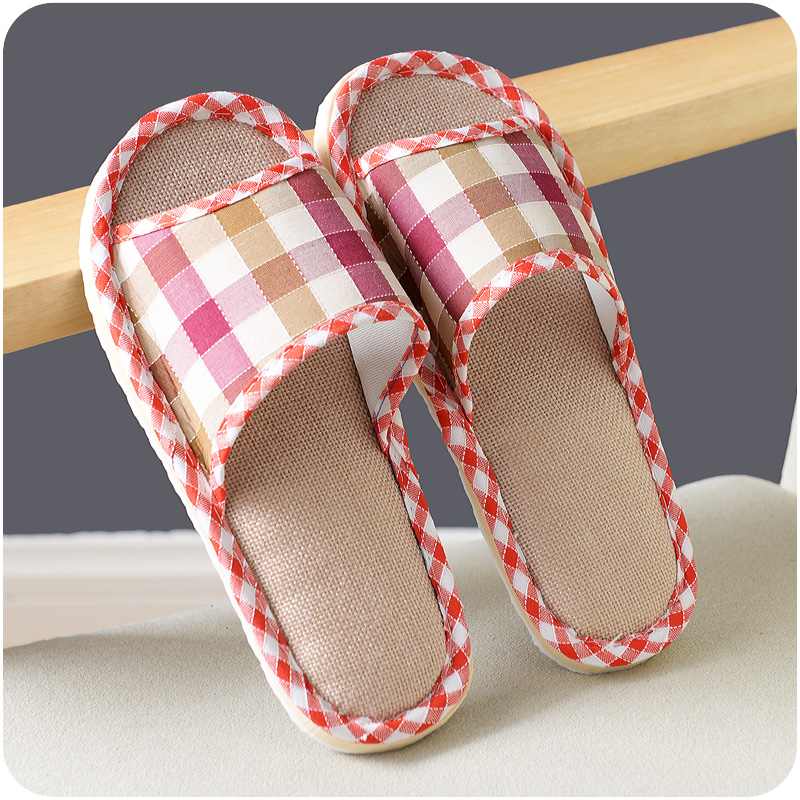 春夏秋冬季家居拖鞋男女情侶英倫格子棉麻亞麻室內地板軟防滑布拖
